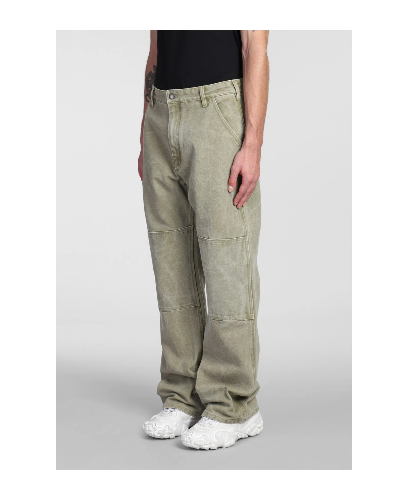Pants in khaki cotton, loose fit, button and zip closure, waist belt loops, pockets, 100% cotton, Made in China, Model is 1. 83 and wears size M