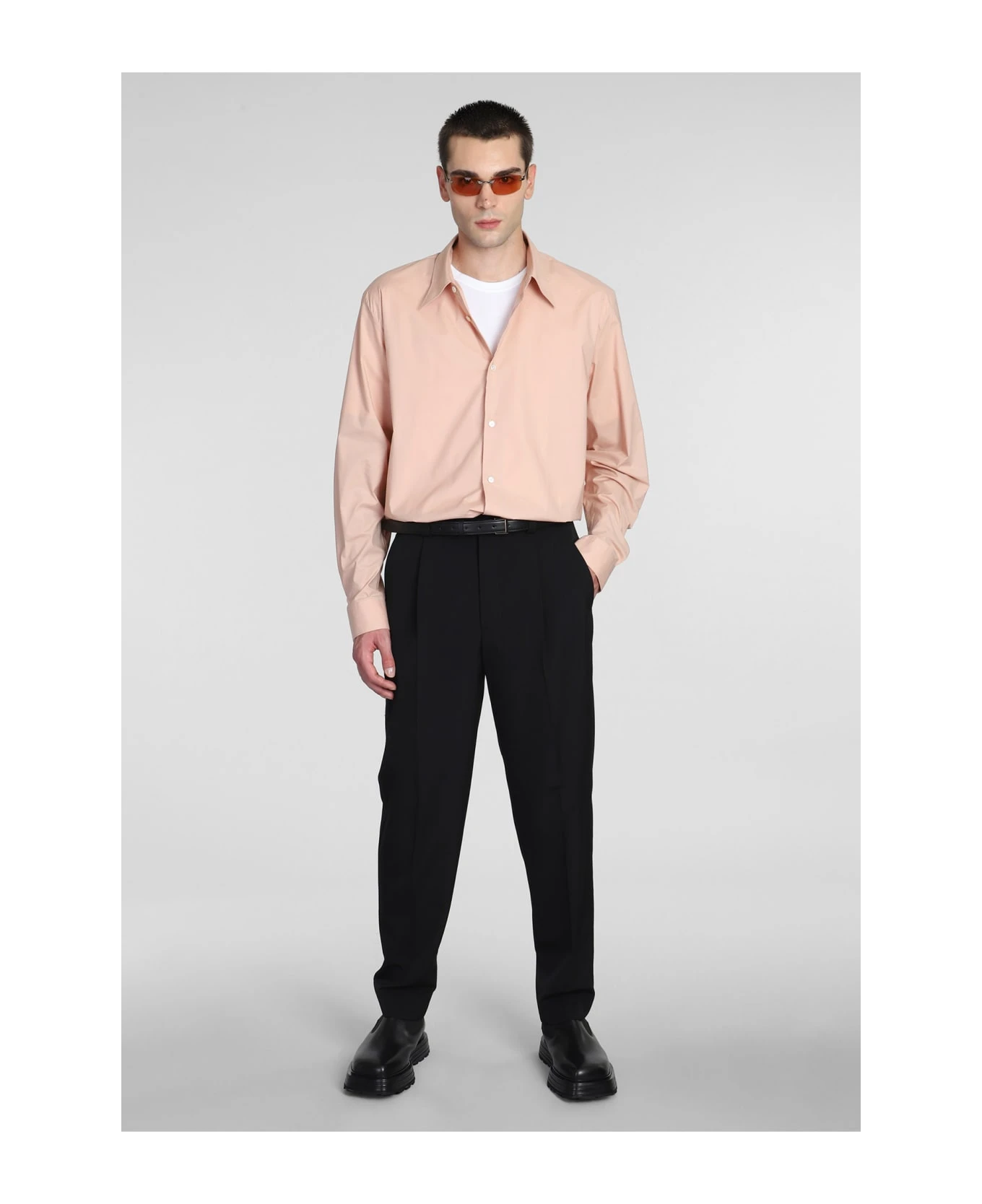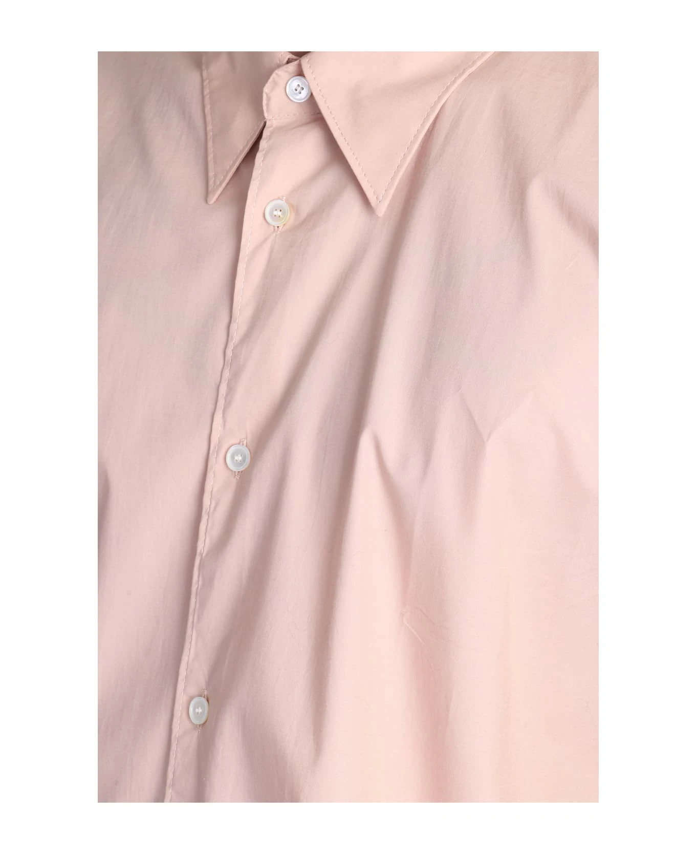 Shirt in rose-pink cotton, collar, long sleeves, frontal buttoning, 95% Cotton 5% Elastane, Model is 183 cm and wears 48