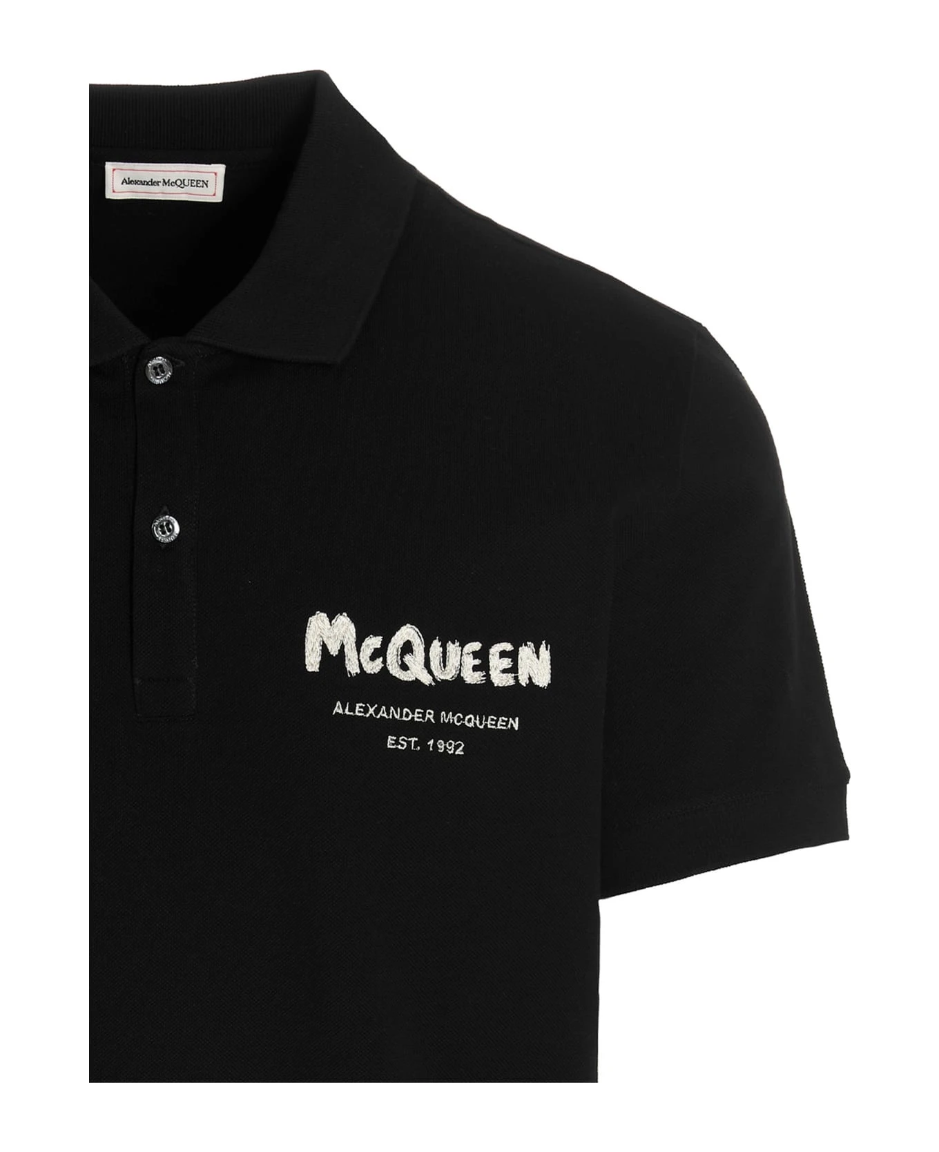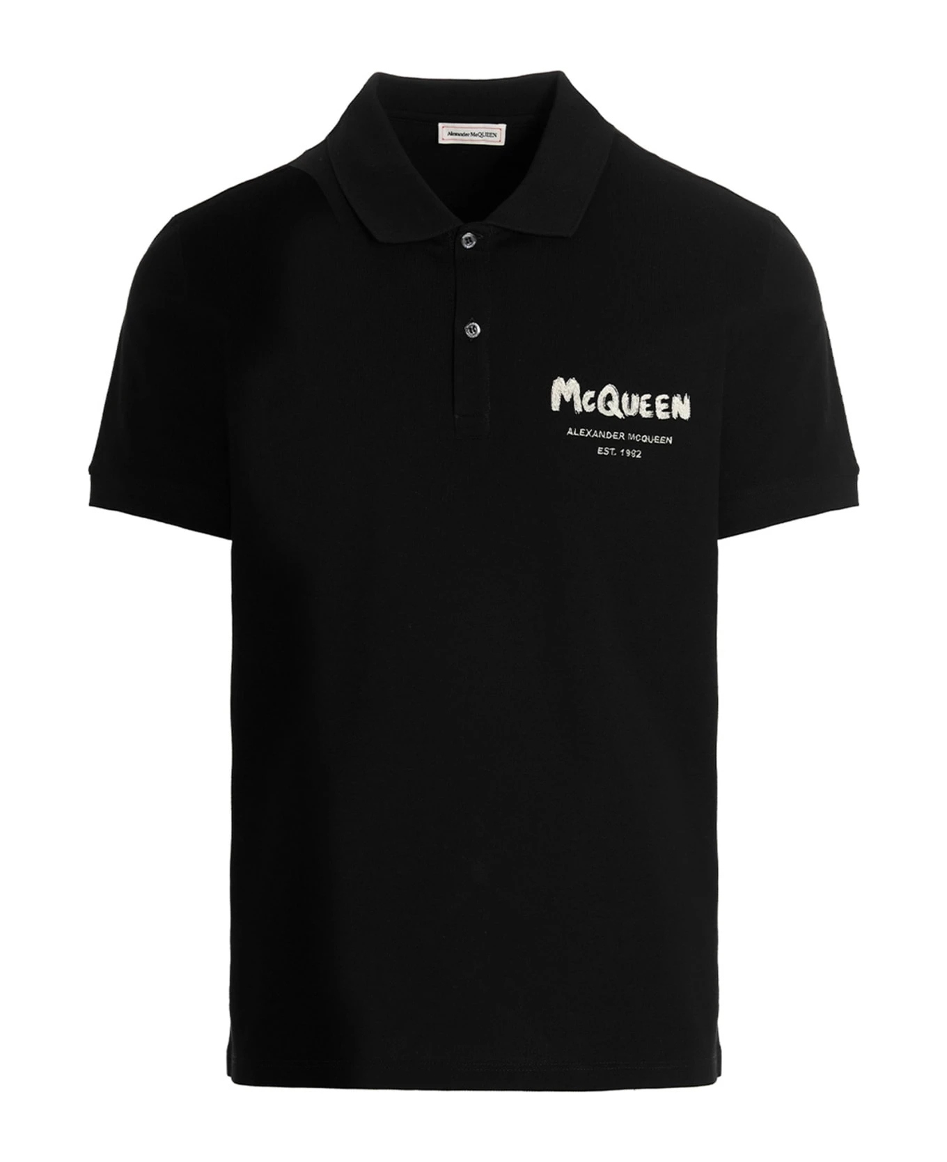‘Graffiti’ cotton piquet polo shirt with front logo embroidery, button closure and short sleeves.