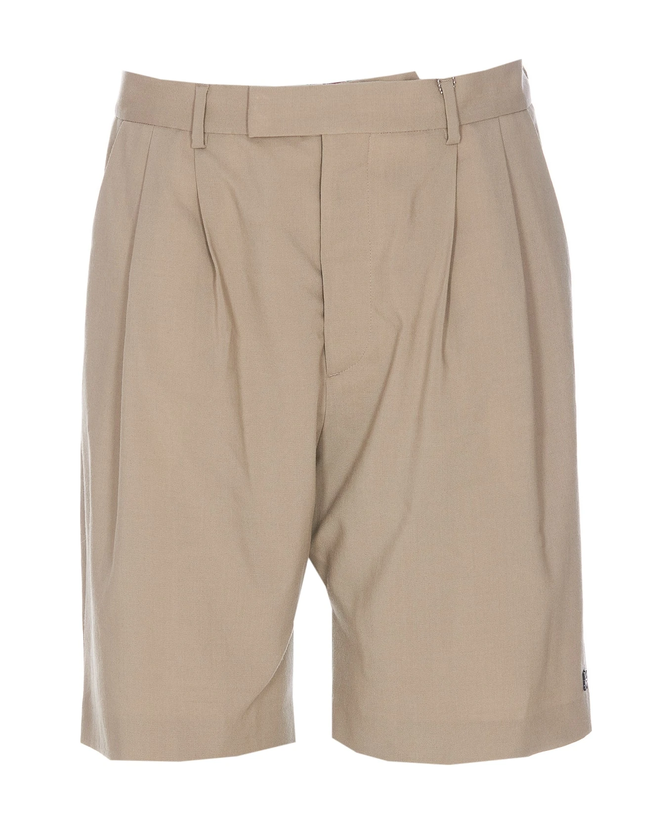 Amiri tan beige shorts with fronta hook and zip closure, lateral pockets