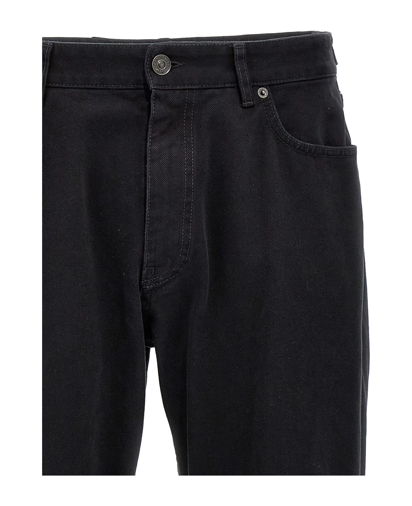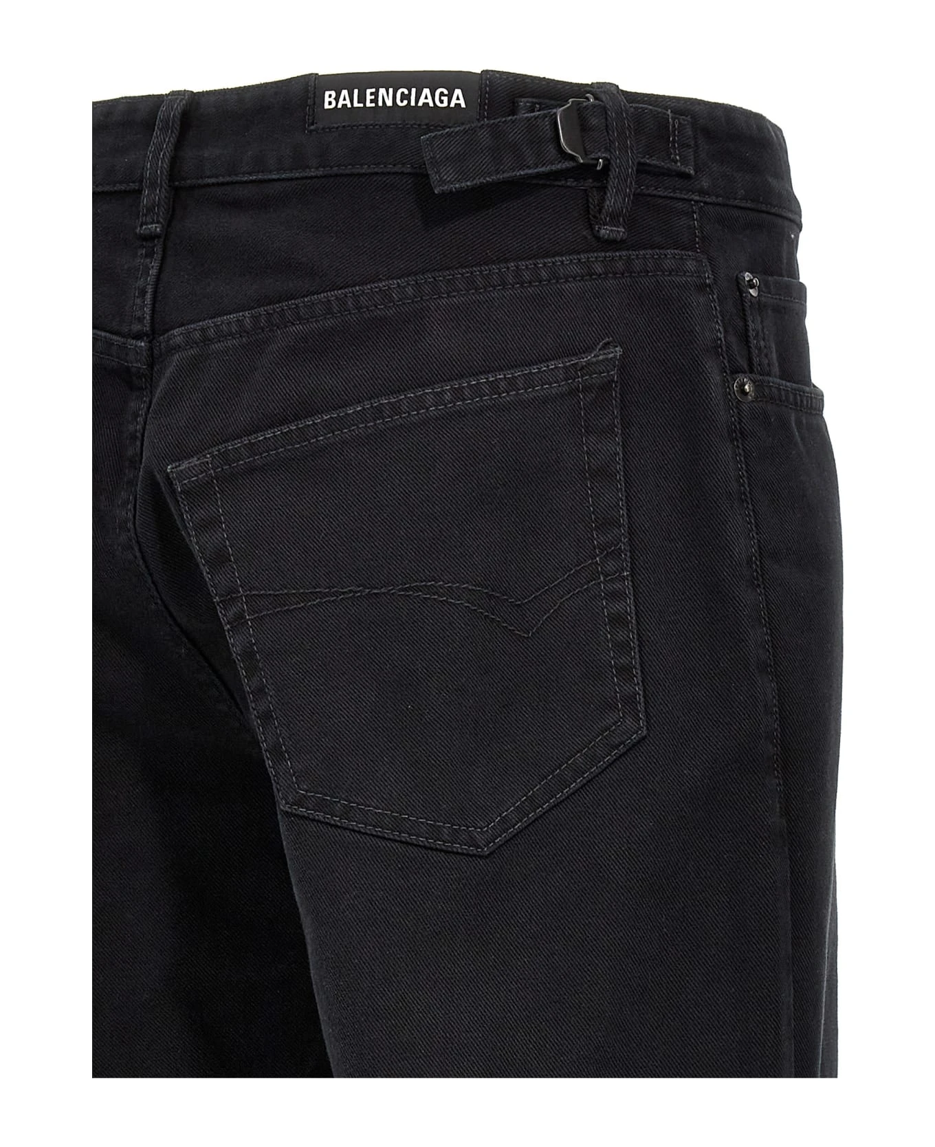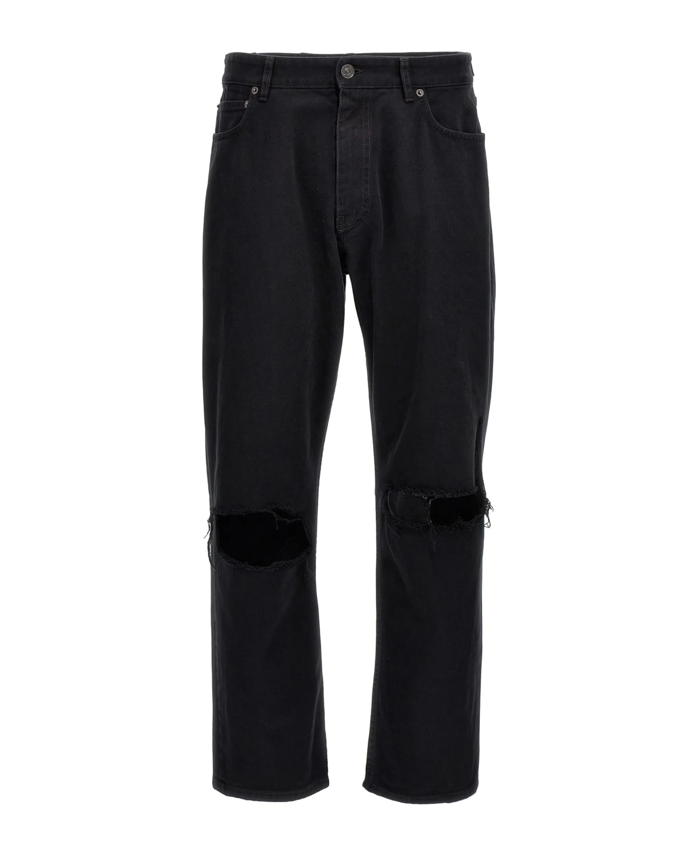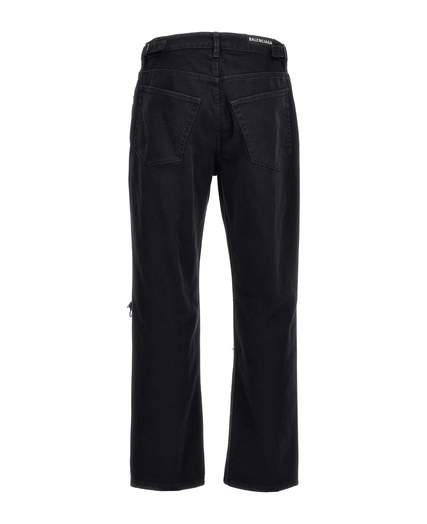 Cotton denim jeans with cut out details, zip and button closure, five pockets, back logo patch, adjustable waist straps.