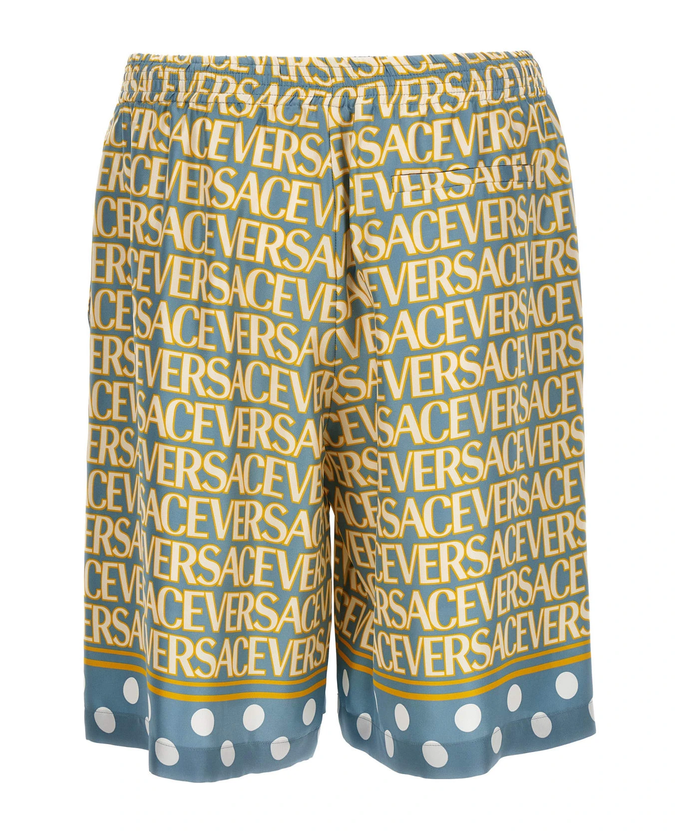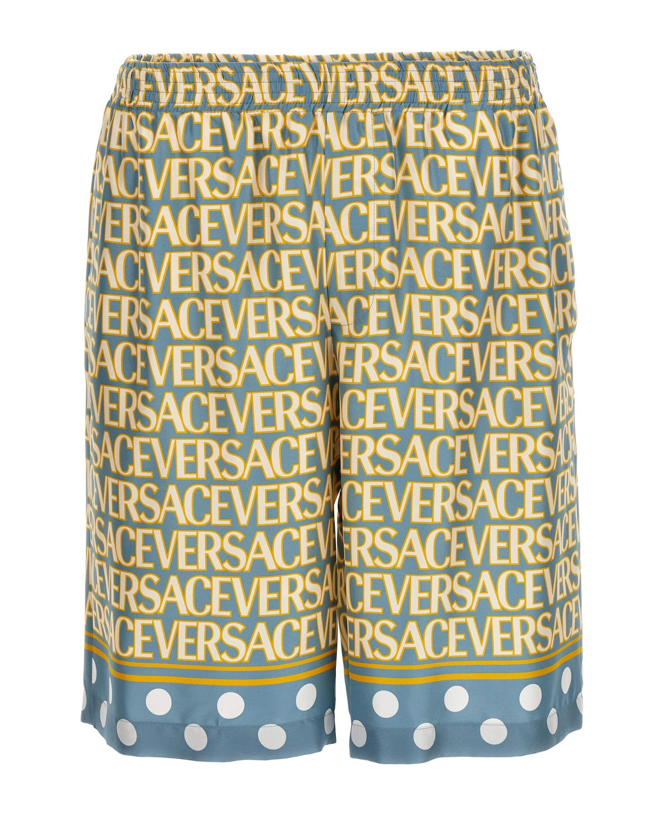 La Vacanza capsule bermuda shorts in silk twill with ‘Versace Allover Polka Dot’ print, elastic waistband and pockets.