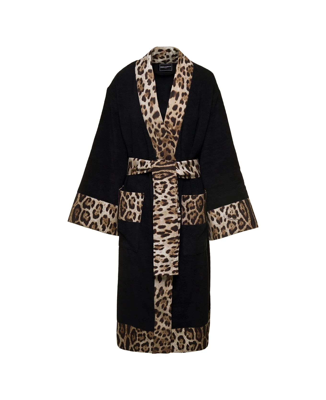 Leopard print on cuffs, pockets, placket and bottom hemline