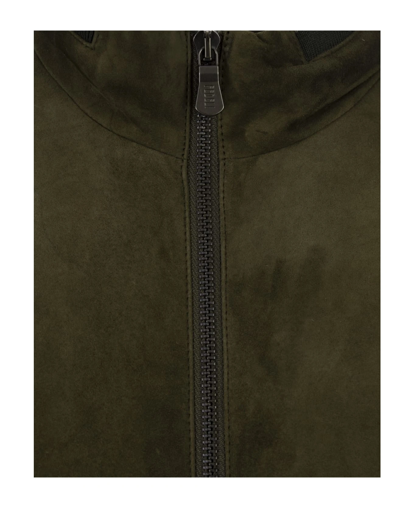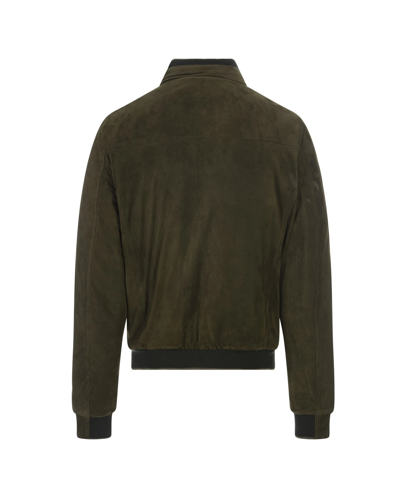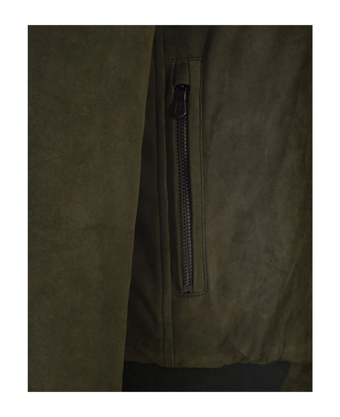 Fedeli bomber jacket for men made of soft brown suede with tone-on-tone nylon lining. Regular-fit model featuring a high collar with ribbed insert, ribbed knit hem and cuffs, zipped side pockets, inside pockets with logo labels, and a practical front fastening with a two-way zip. Fedeli bomber jacket for men made of soft green suede with tone-on-tone nylon lining. Regular-fit model featuring a high collar with ribbed insert, ribbed knit hem and cuffs, zipped side pockets, inside pockets with logo labels, and a practical front fastening with a two-way zip.