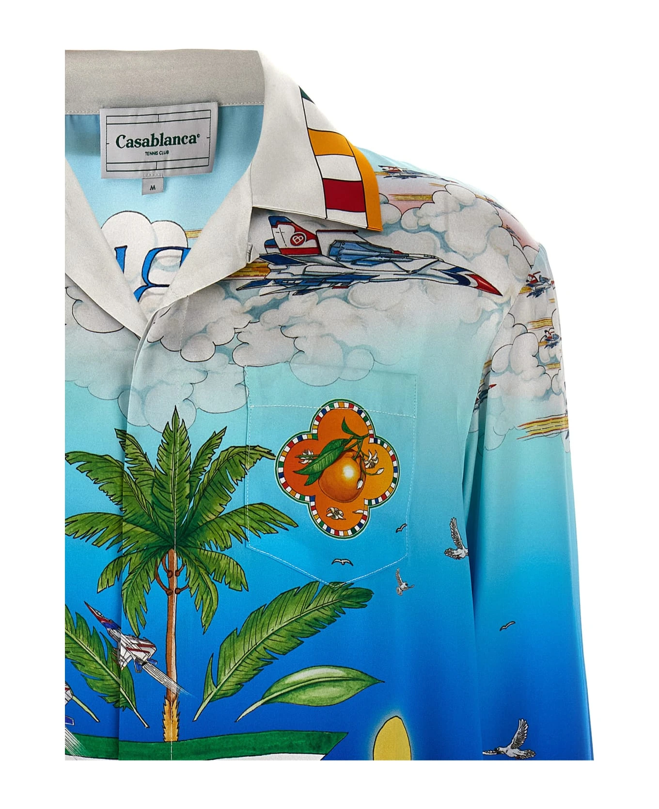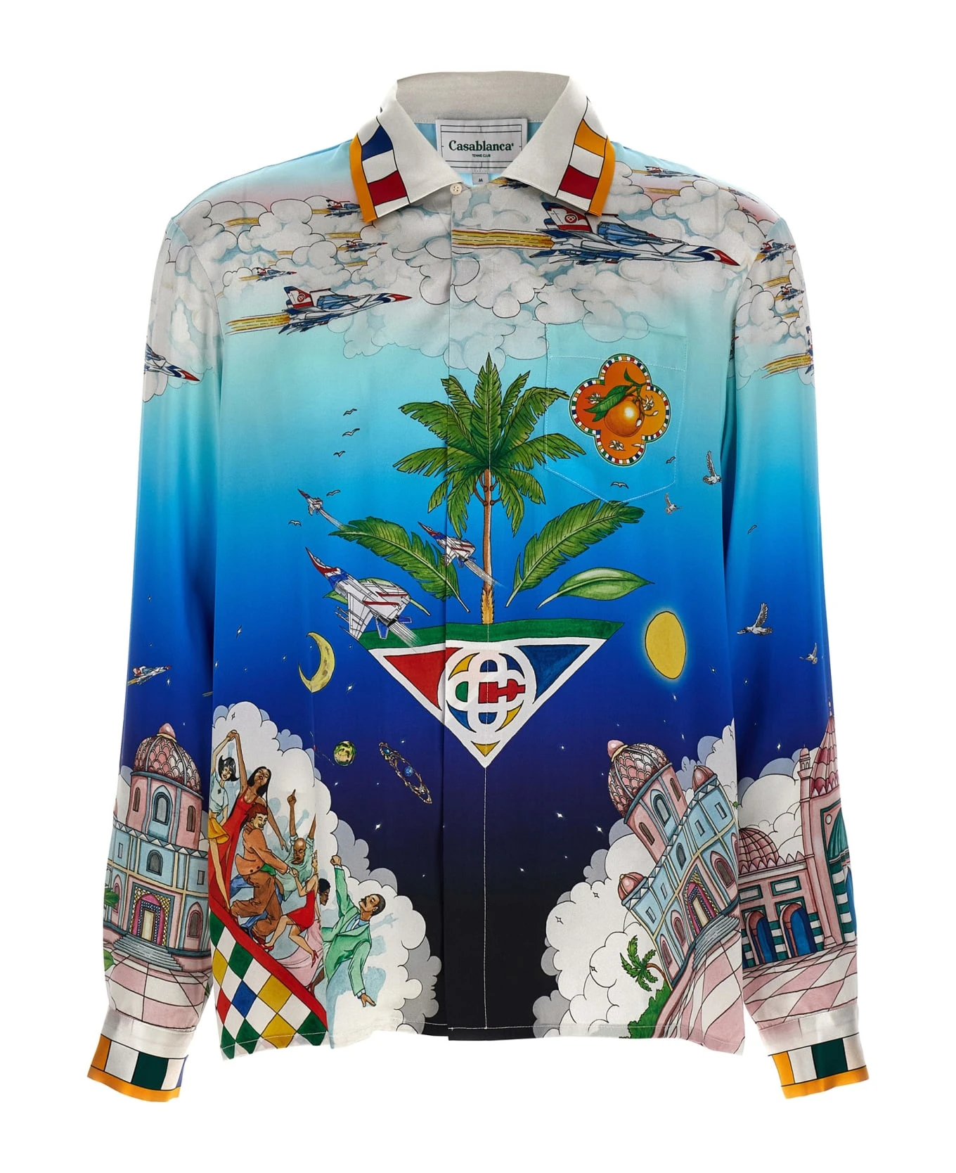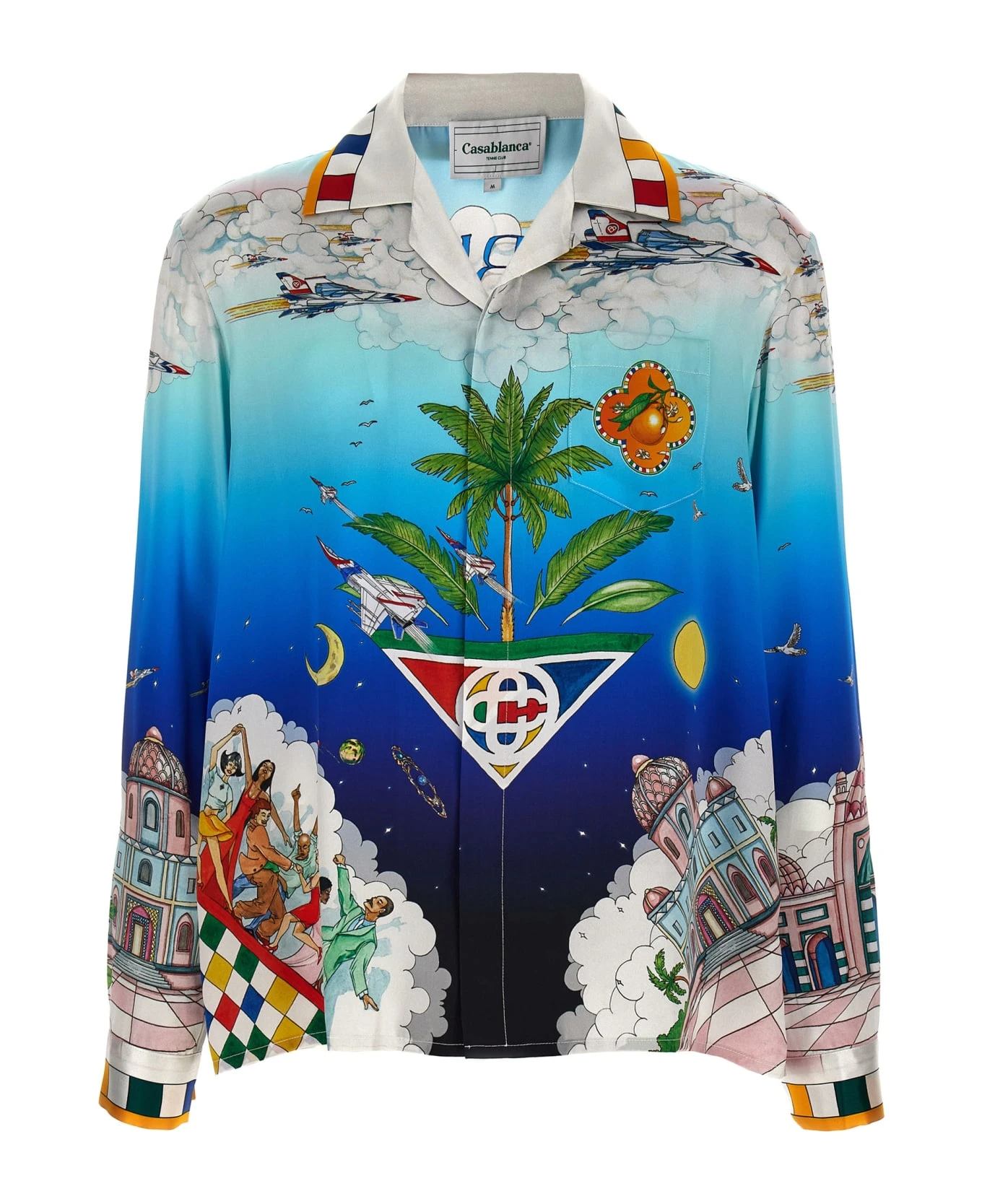 ‘Le dimension’ silk shirt with all-over print, button closure.