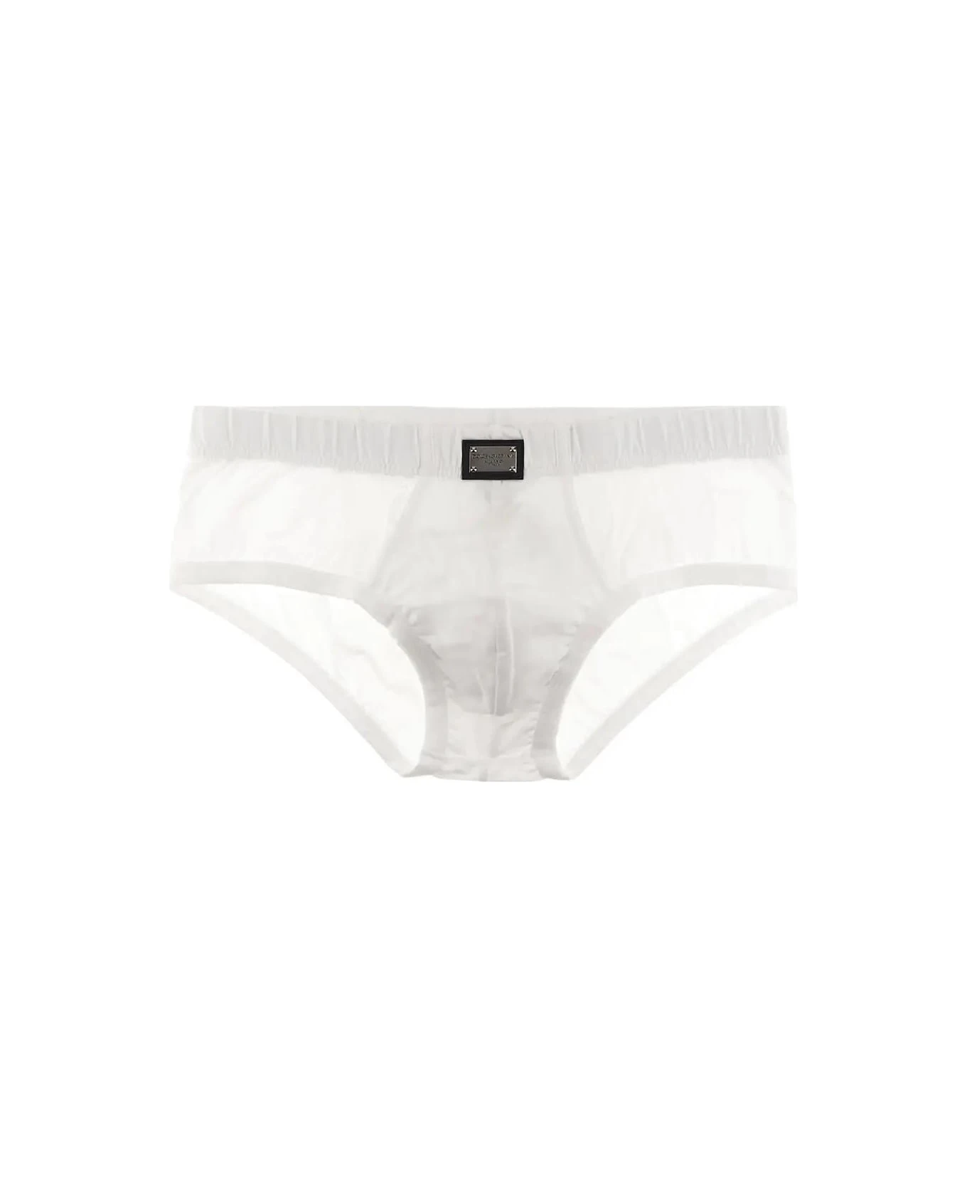 Bianco ottico Brando Briefs With Logo Tag from Dolce & Gabbana