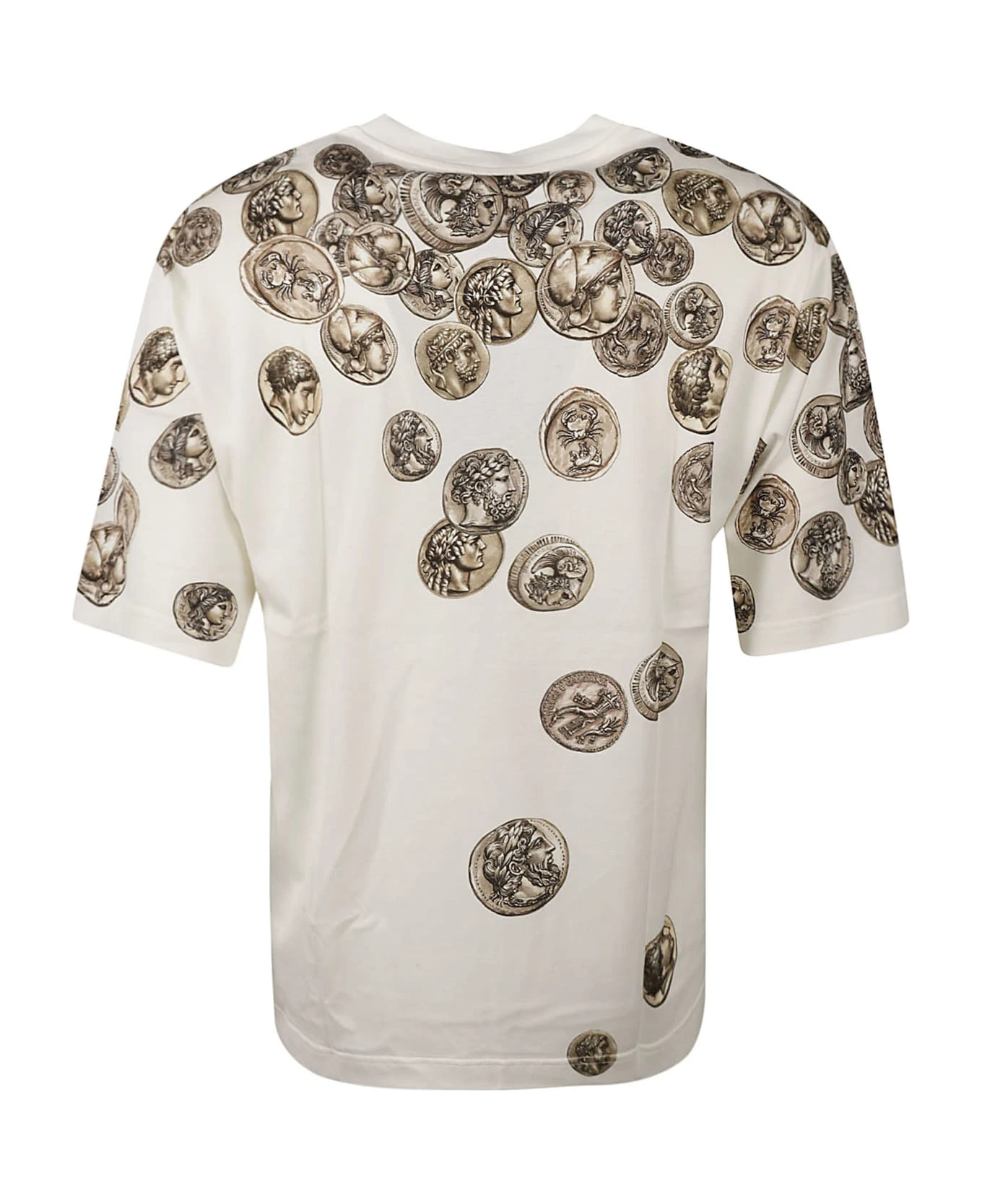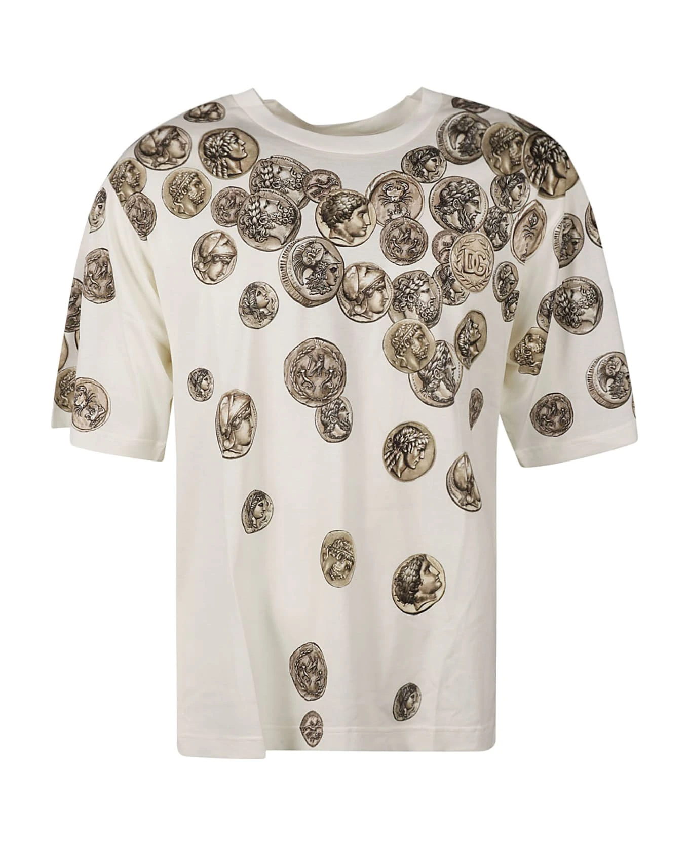 graphic-print short-sleeve T-shirt from DOLCE & GABBANA featuring beige, cotton, all-over graphic print, round neck, short sleeves and short sleeves.
