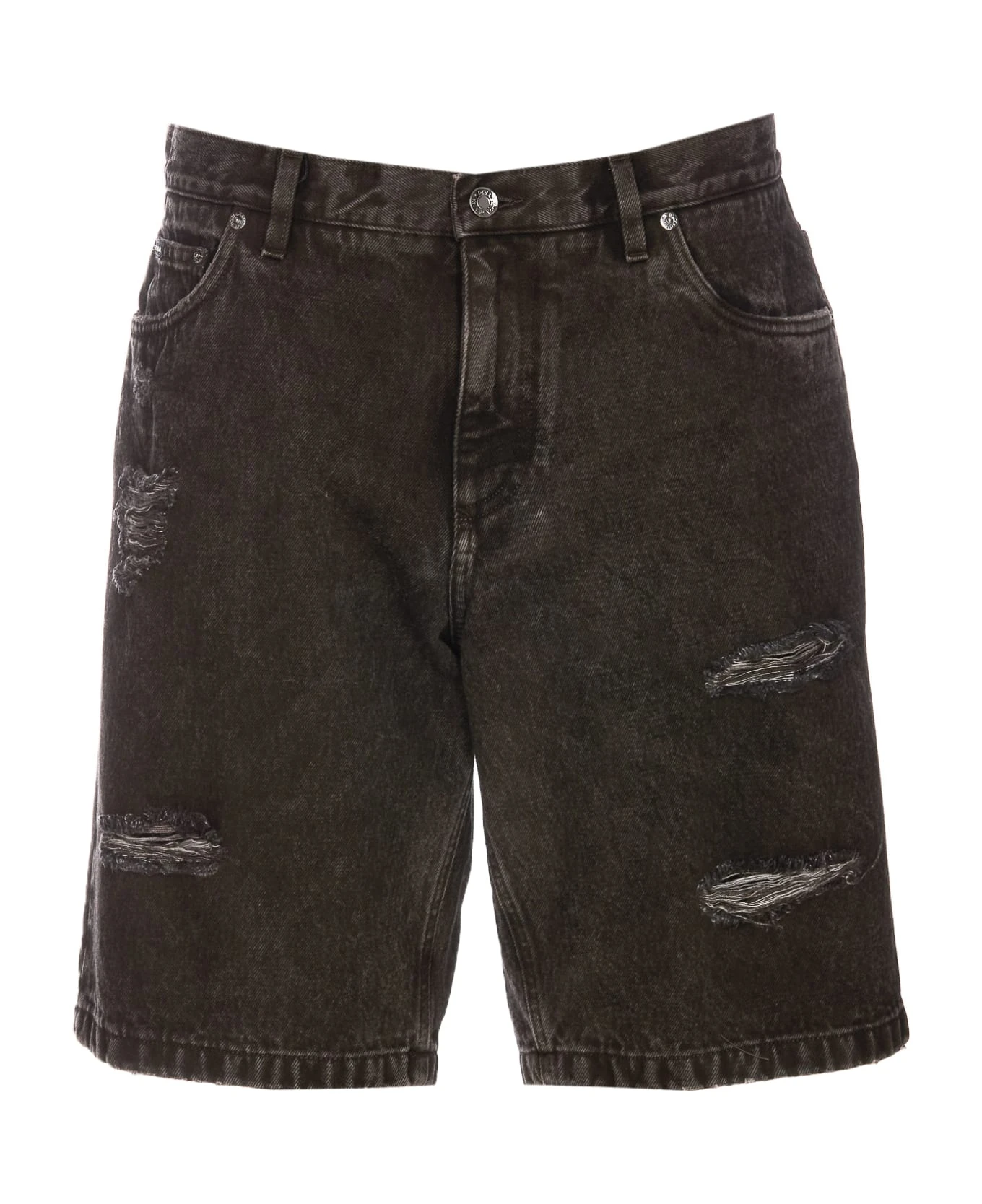 Dolce&Gabbana black denim shorts, frotntal button and zip closure, 5 pockets, distressed, plaque logo on the back