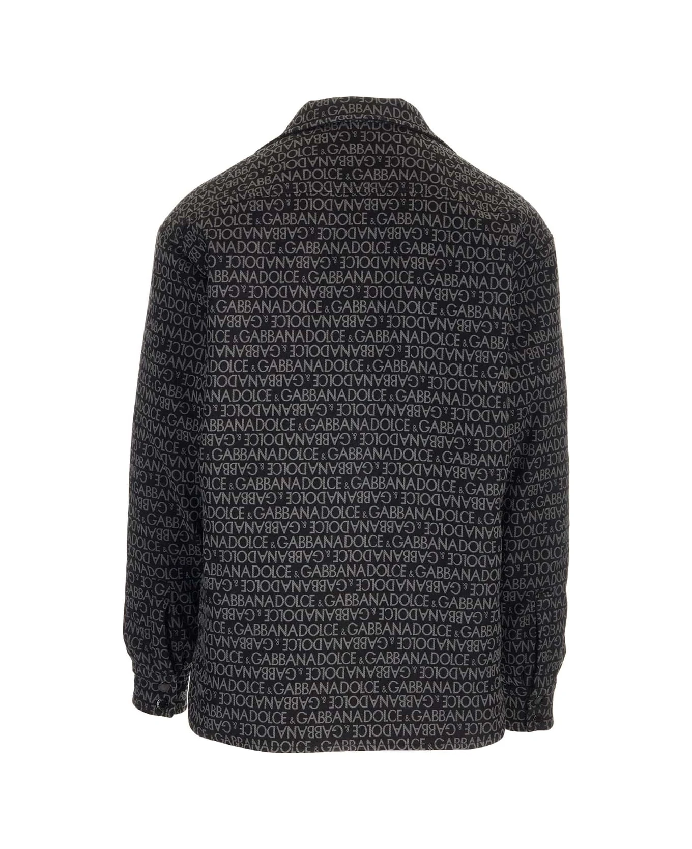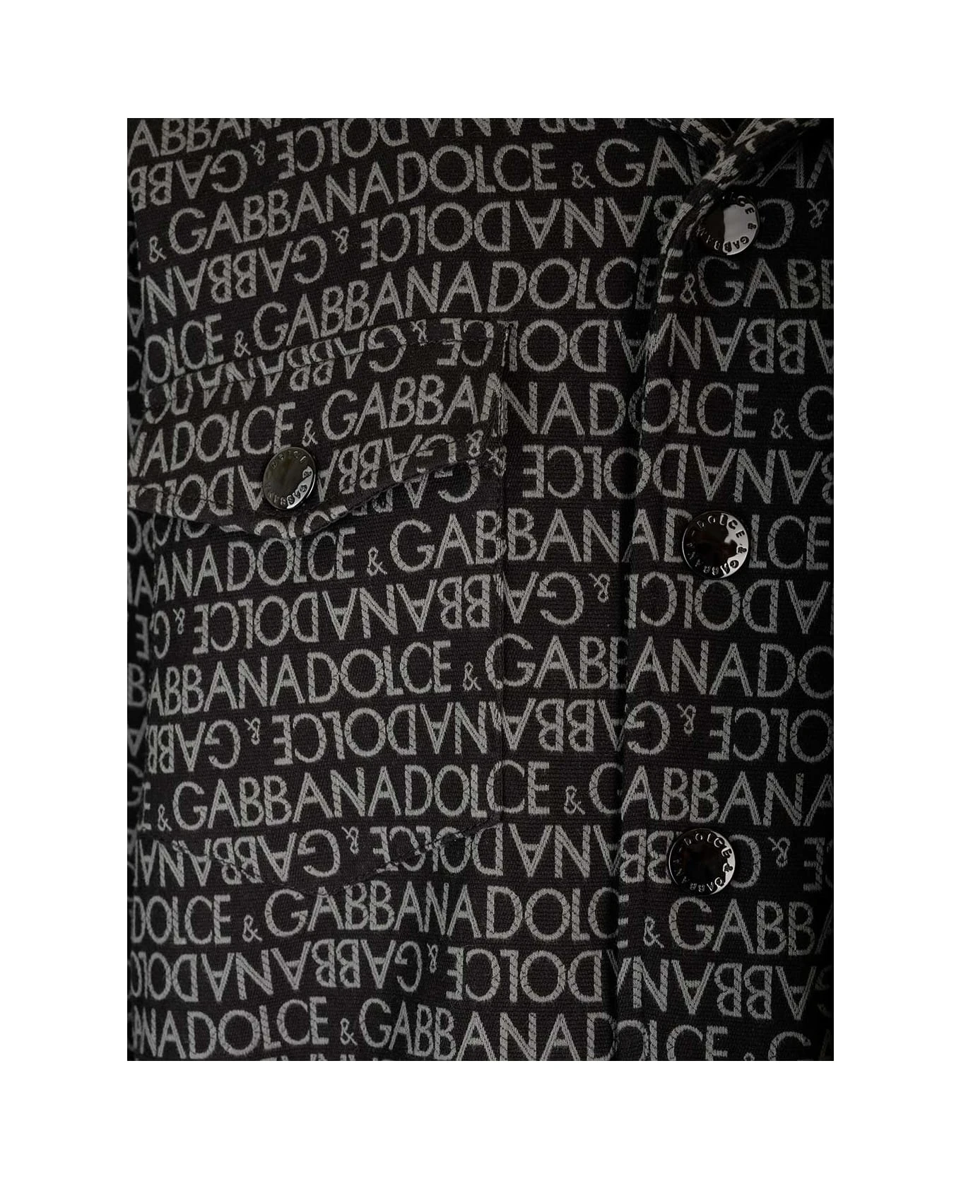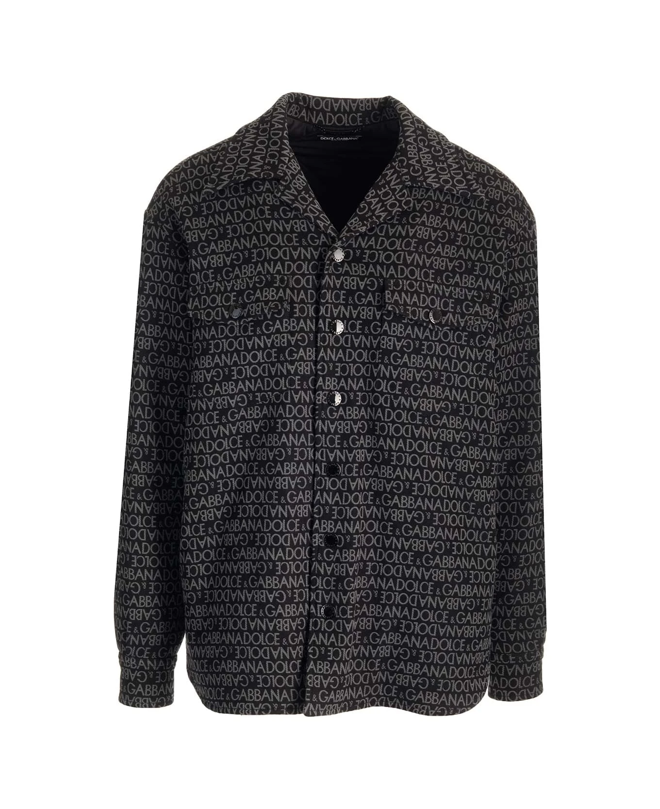 Padded overshirt from Dolce&Gabbana made of barr otton with all-over jacquard logo, quilted internal lining, regular fit, Italian collar, long sleeves, snap button closure, pockets with flap and snap button.