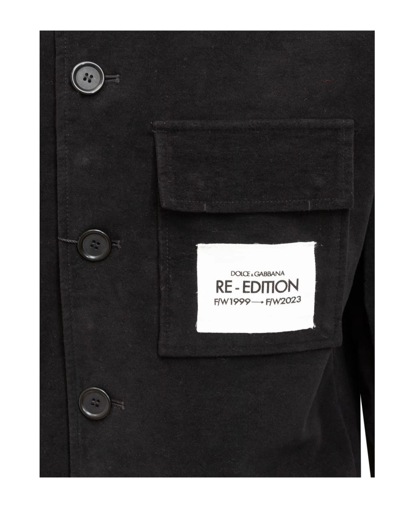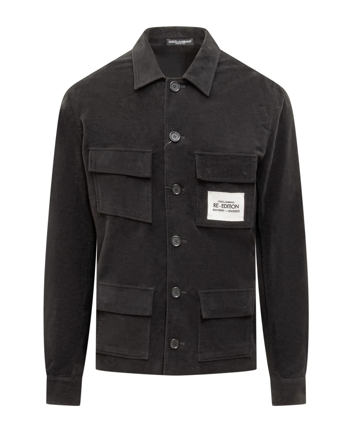 Long-sleeved shirt. Classic collar. Button closure. Button cuffs. Four pockets on front. Re-Edition FW 1999 label.