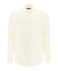 Martini shirt by Dolce & Gabbana crafted in silk satin with pointed collar, concealed front buttoning and French cuffs. Regular fit. The model is 187 cm tall and wears a size 40.