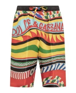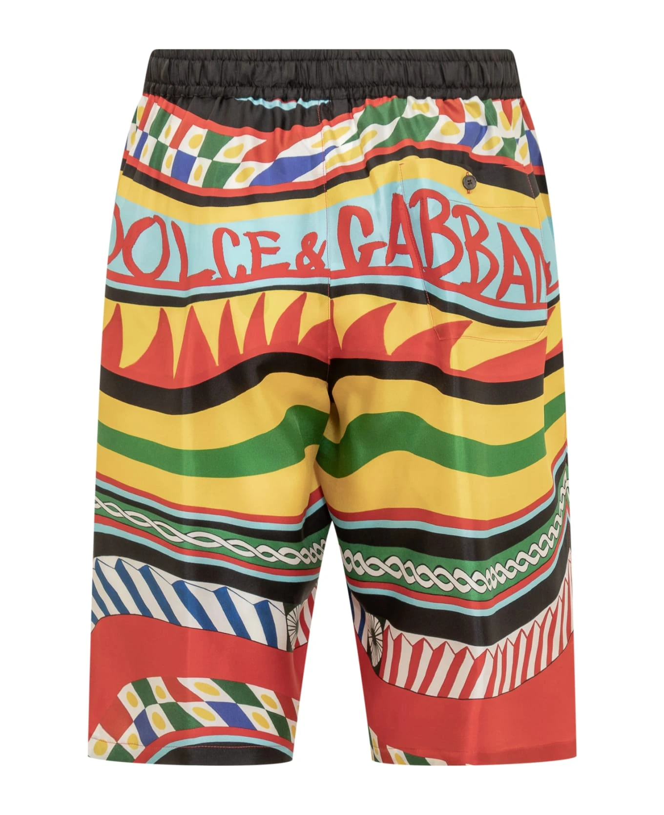 Short with drawstring. Elastic waist. All-over print. Side and back pockets.