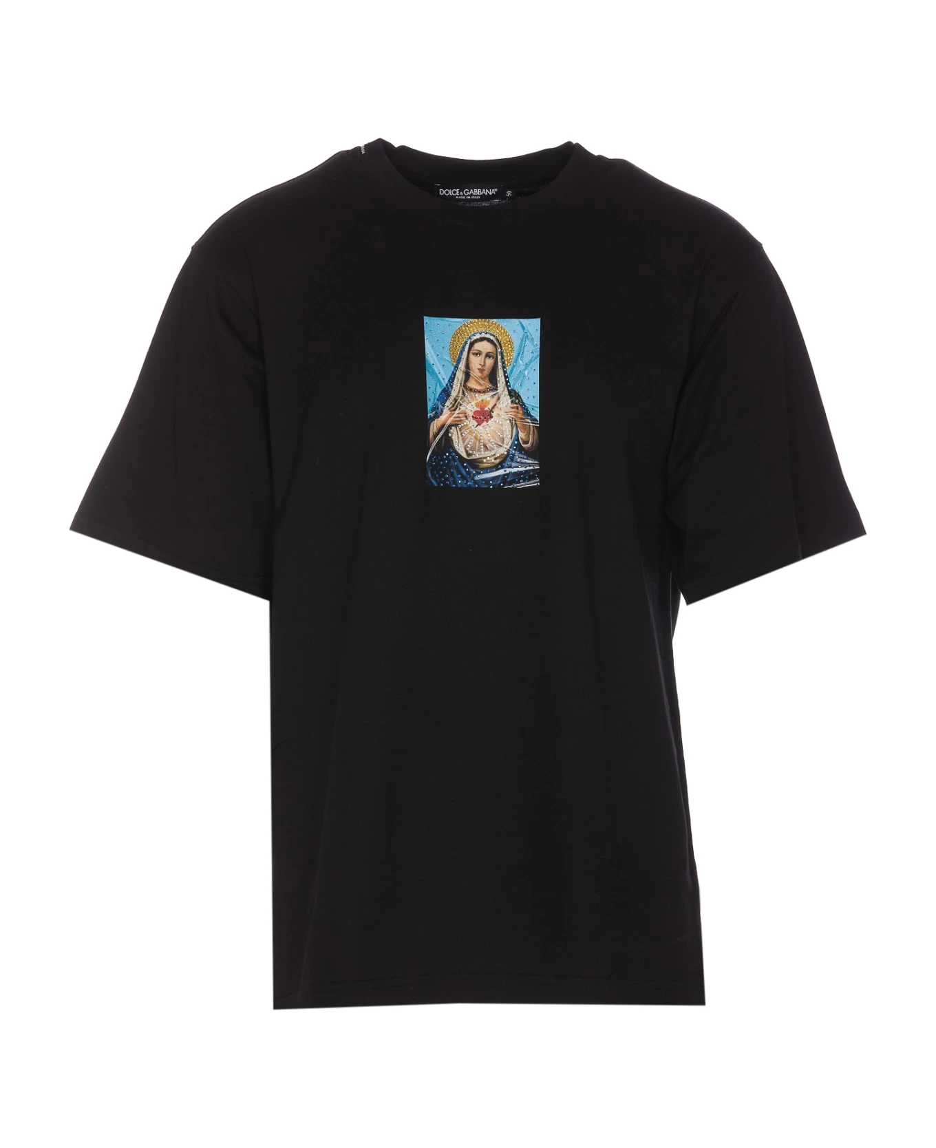 Dolce&Gabbana black t-shirt, crewneck, frontal print with strass details