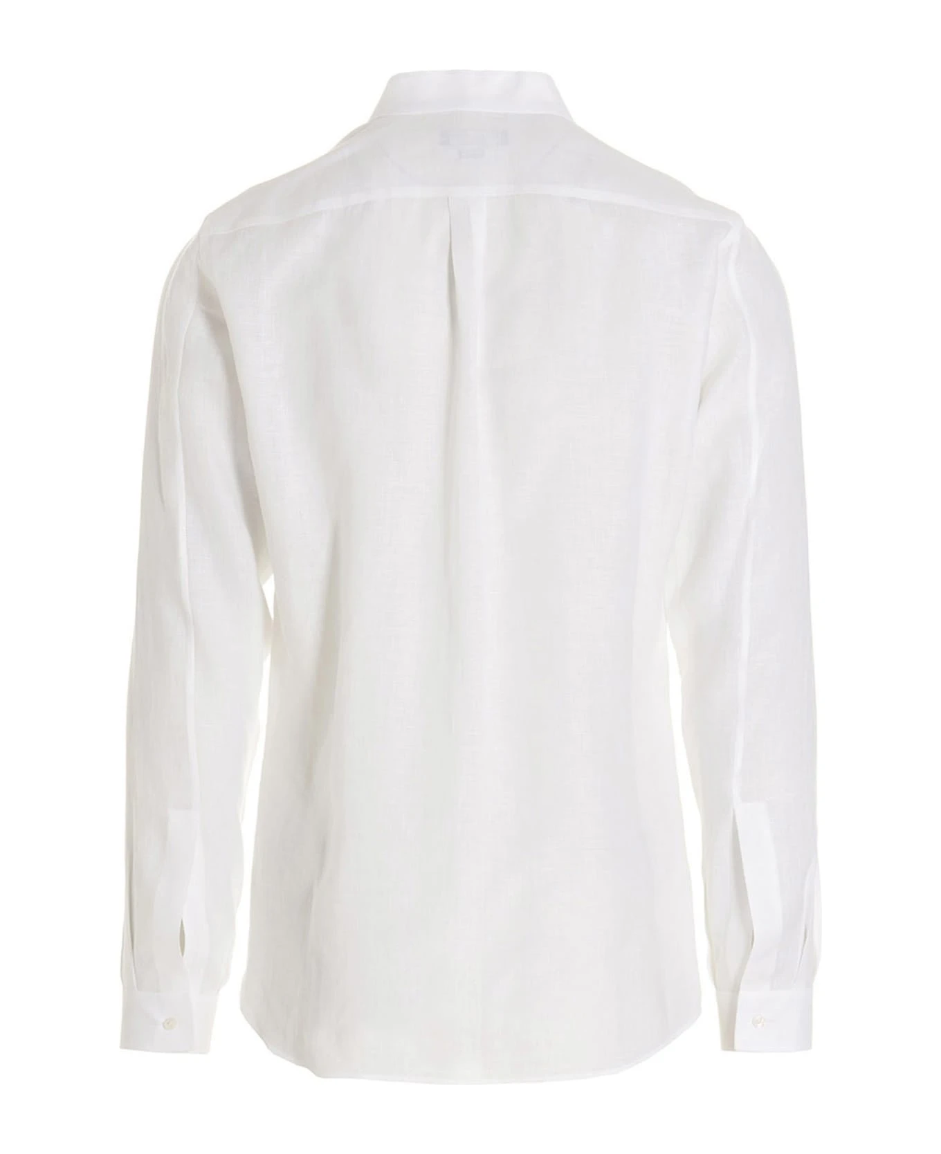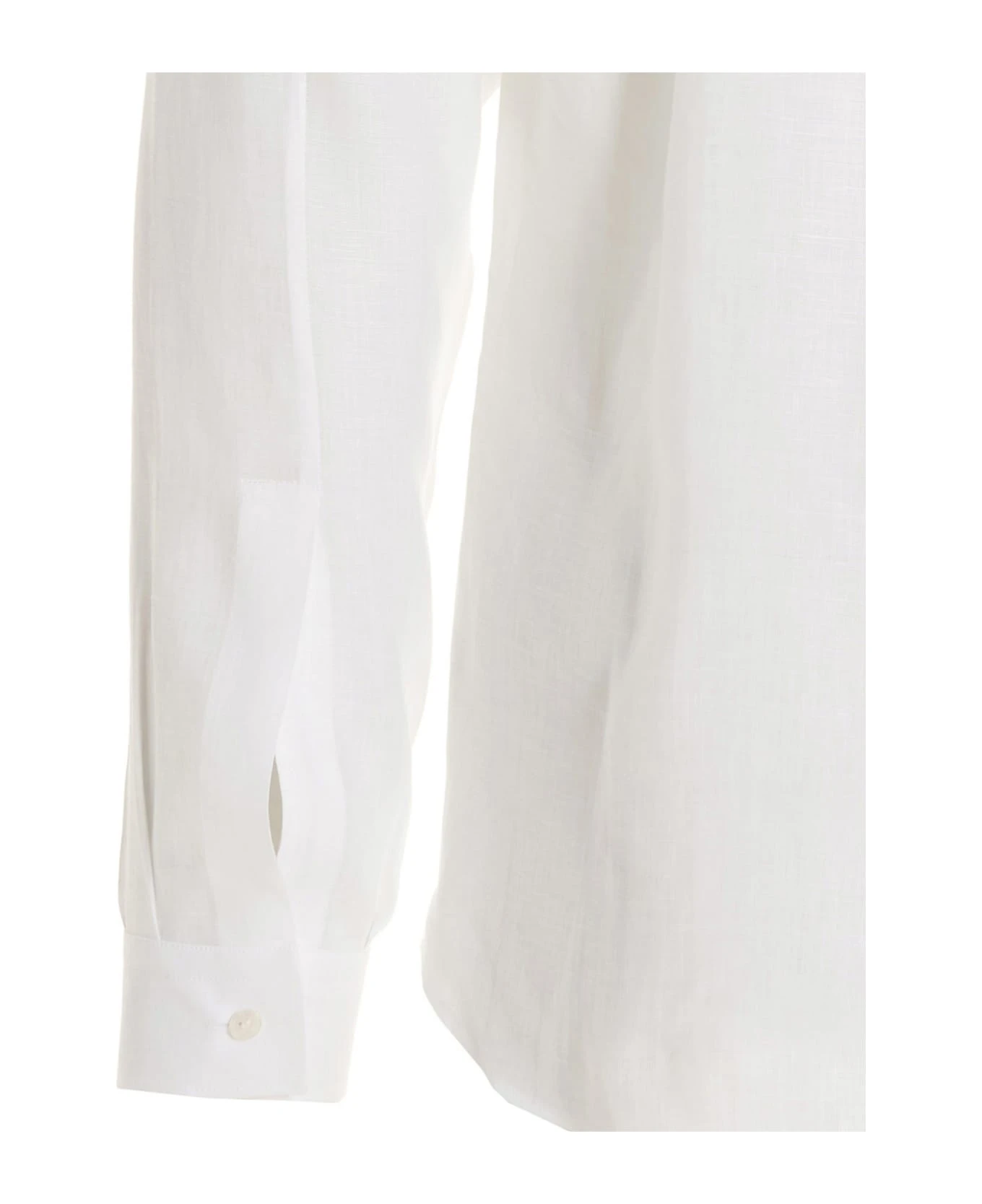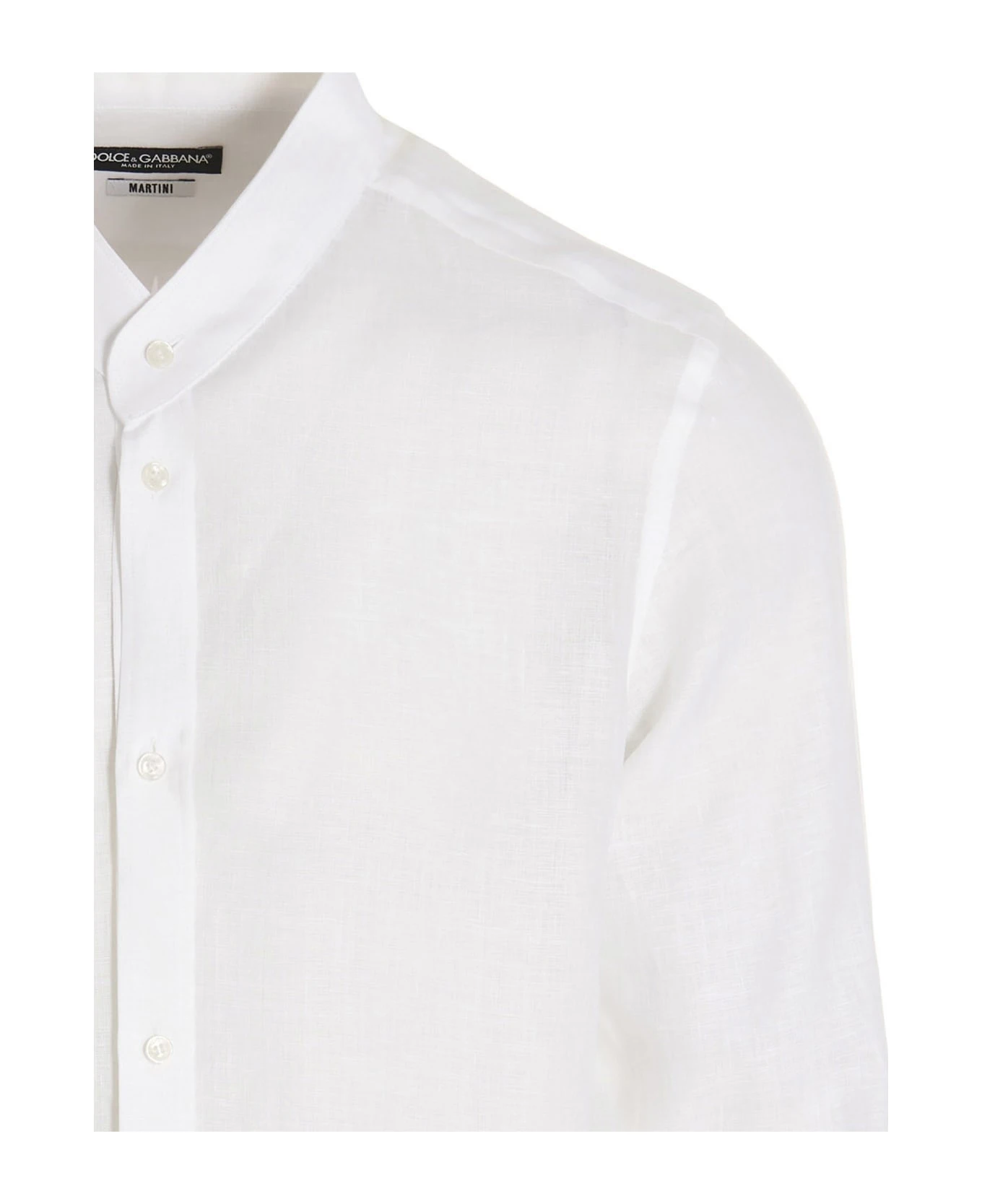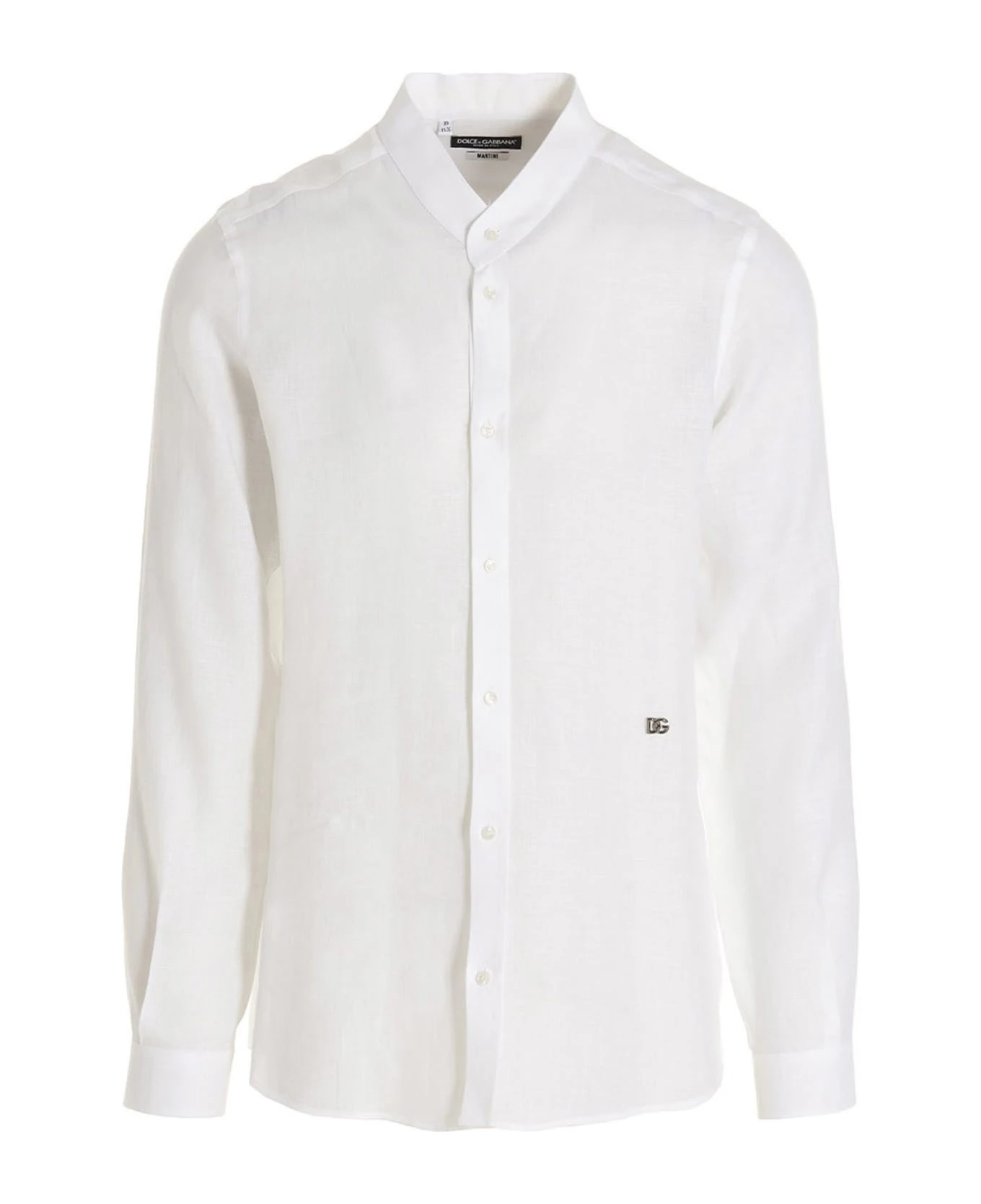 Dolce & Gabbana x Martini linen shirt with crewneck, long cuffed sleeves, a button closure, a metal logo application on the front.