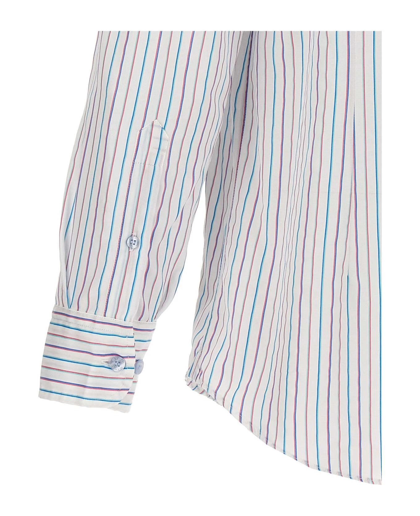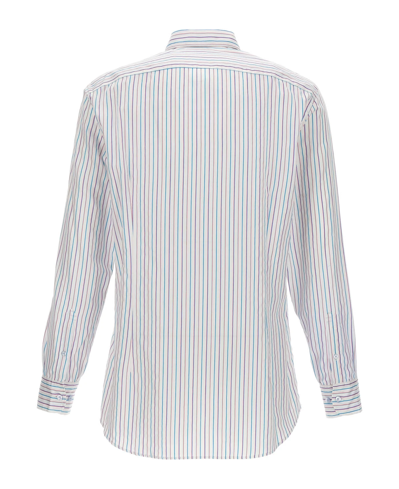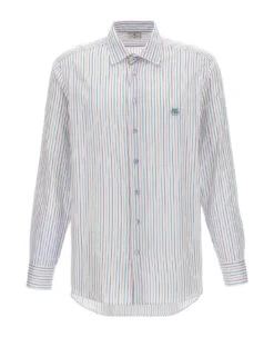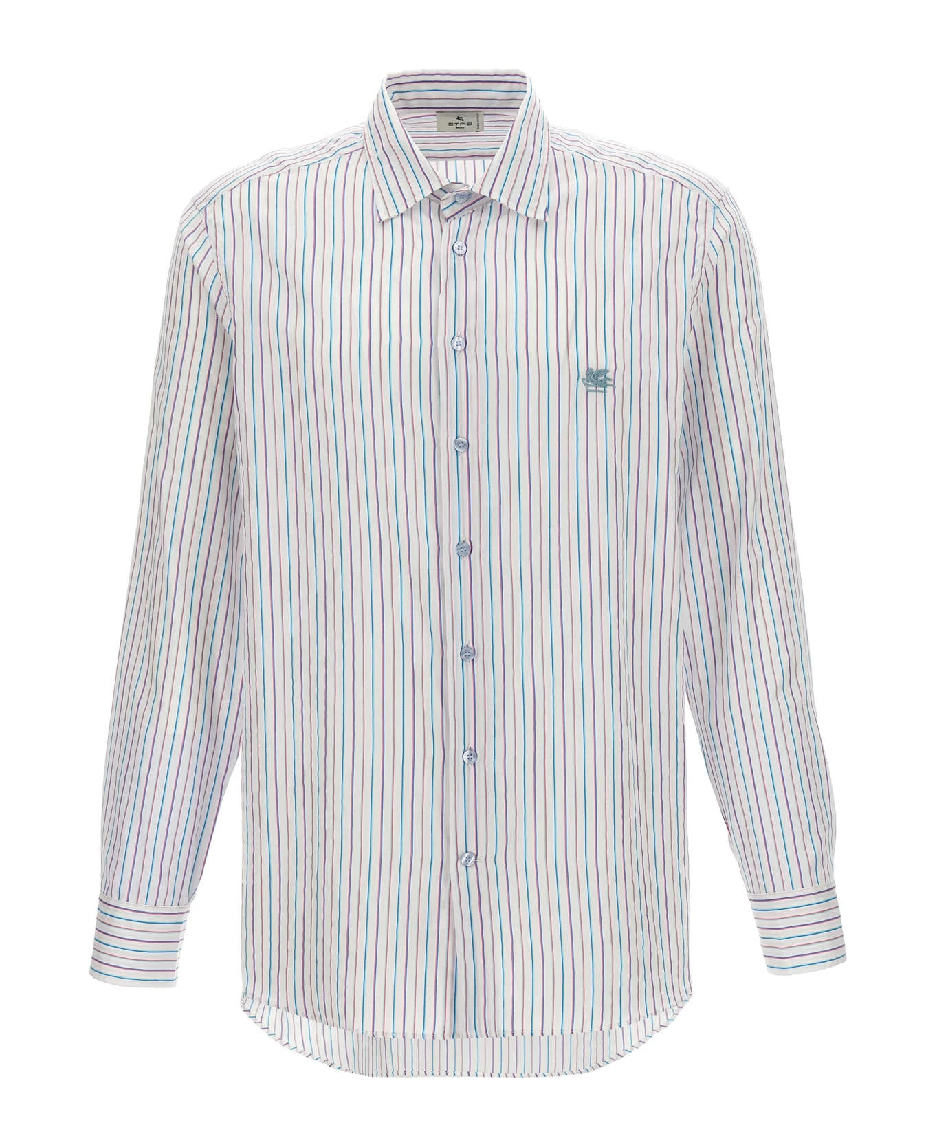 Striped cotton shirt with front embroidered logo, button closure, and long cuffed sleeves.