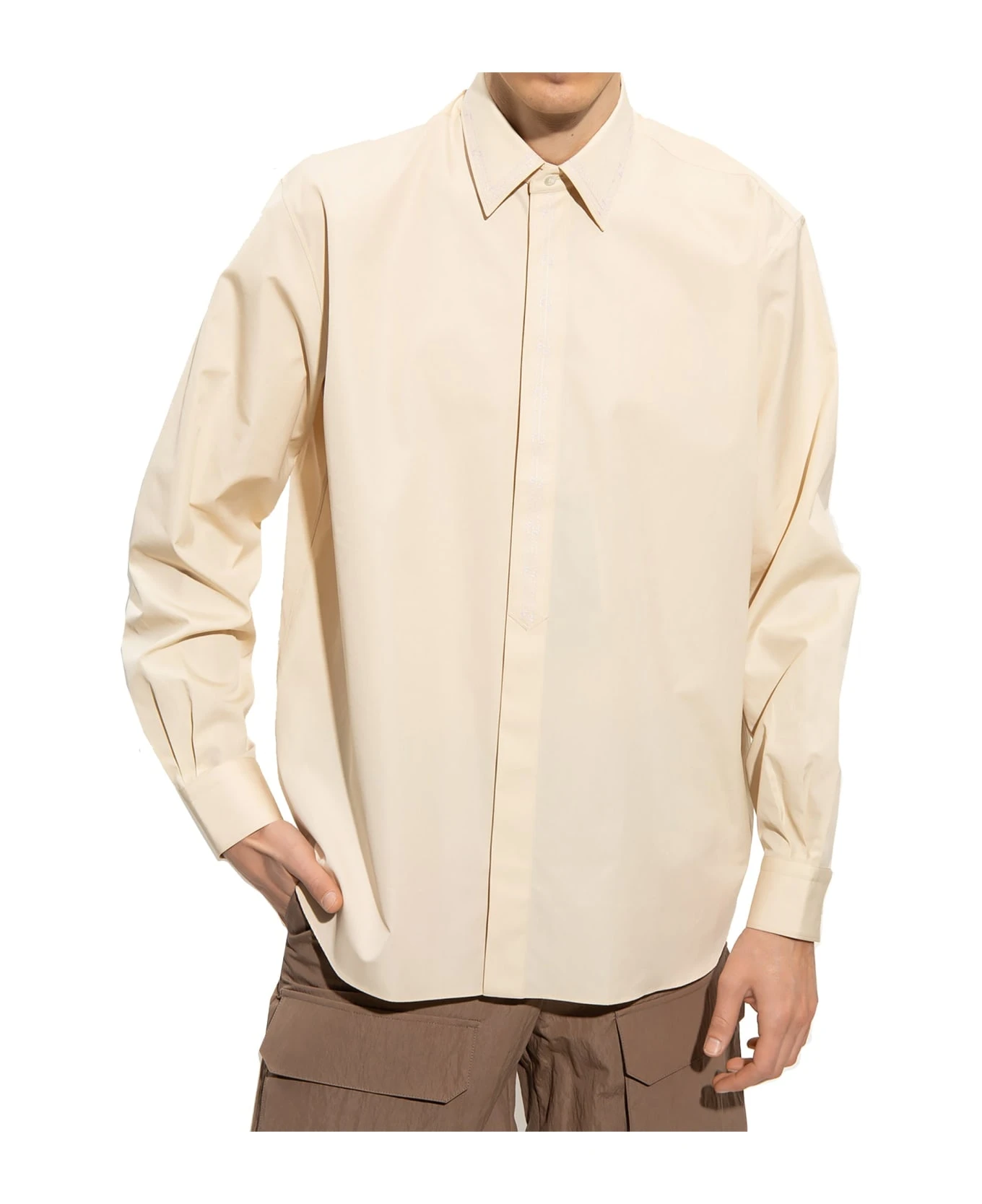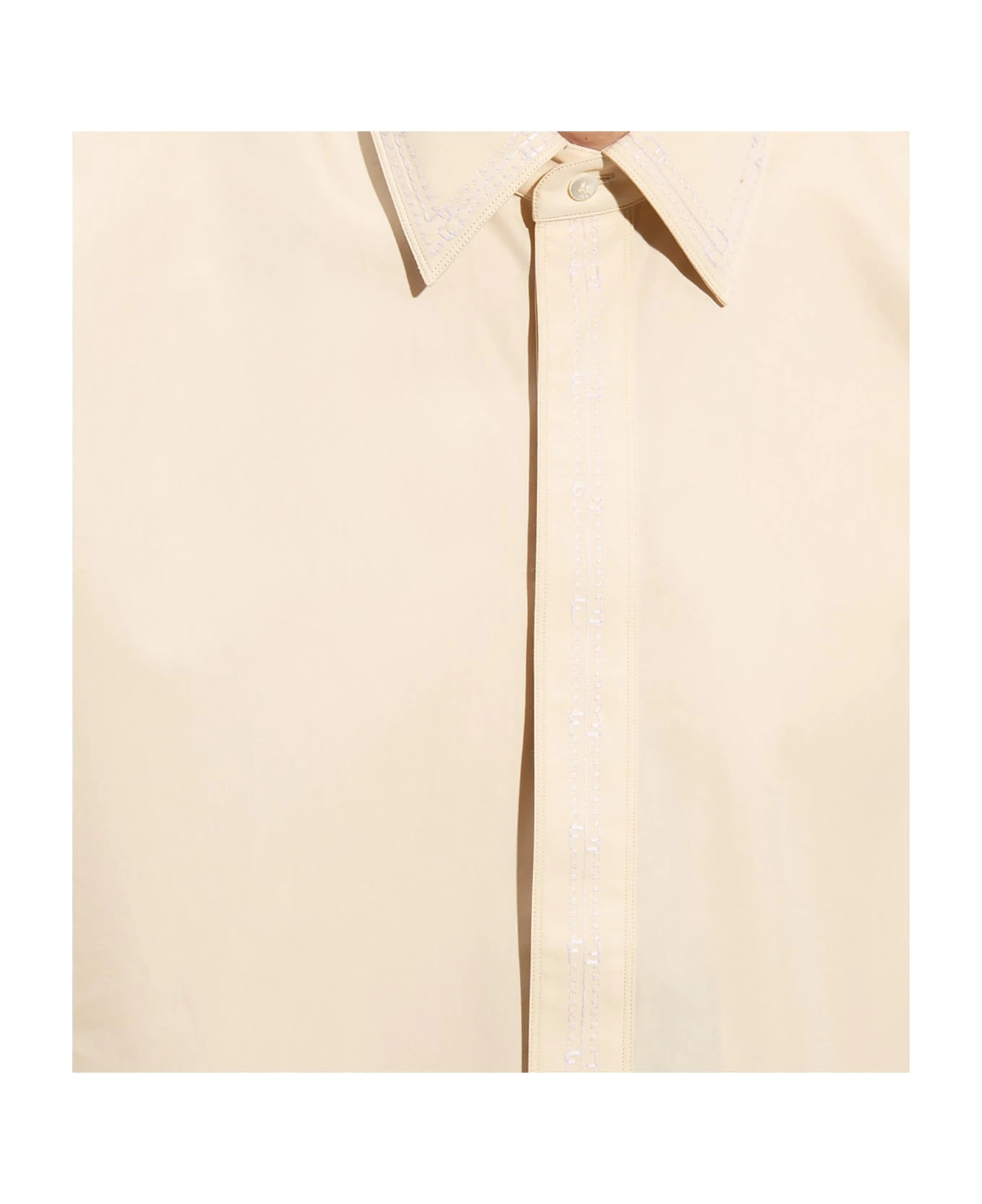 – Composition: 100% cotton – Mother-of-pearl buttons – Concealed button fastening – Button cuffs – Purple embroidery details – Specialist wash