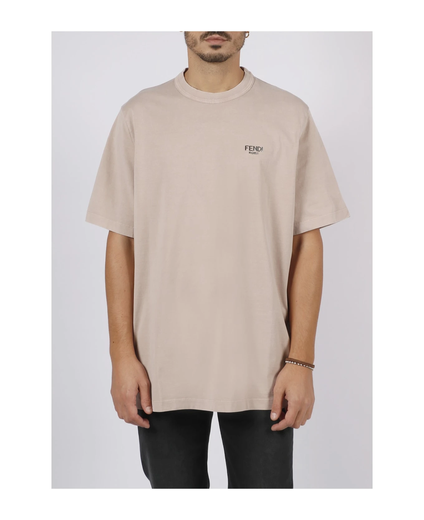 Fendi t-shirt, in washed cotton jersey with metal FENDI ROMA patch on the chest. – FW23