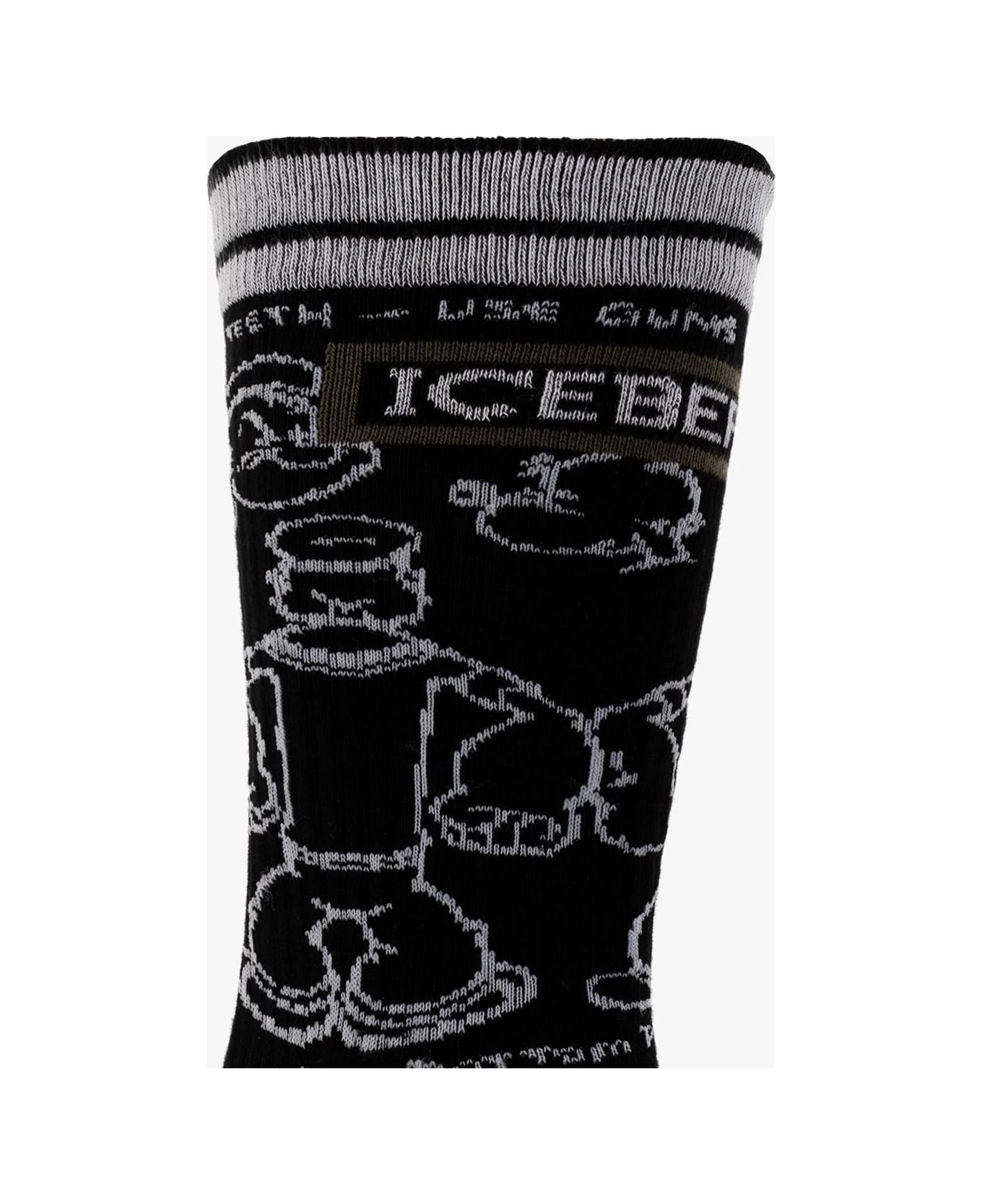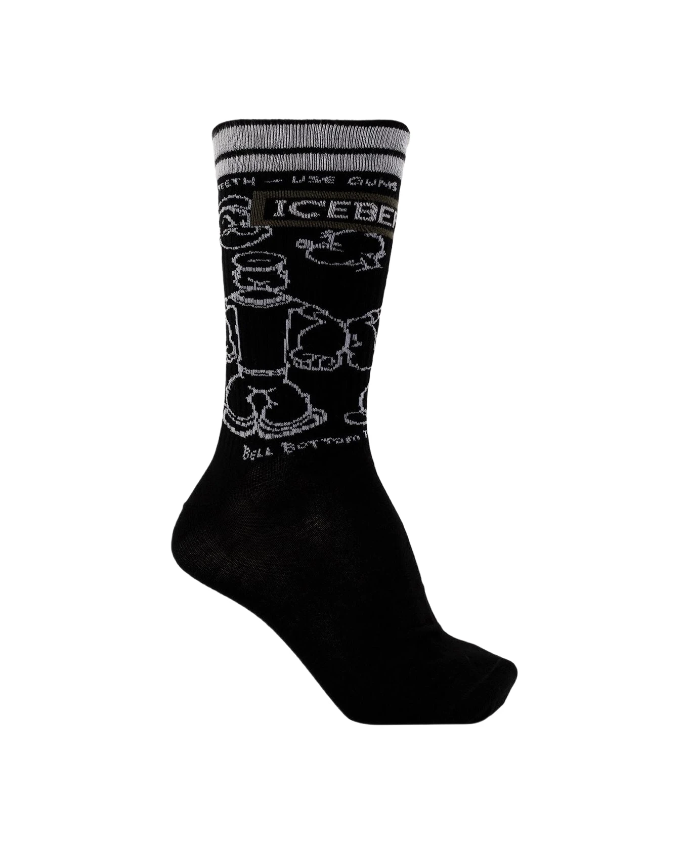 Black socks from Iceberg. Made from cotton, this pair features ribbed cuffs and a white graphic with a Popeye motif.