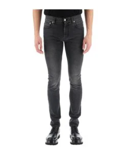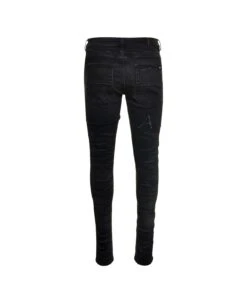 Amiri Black Skinny Jeans With Crystal Embellished Logo And Used Effect In Stretch Cotton Denim Man