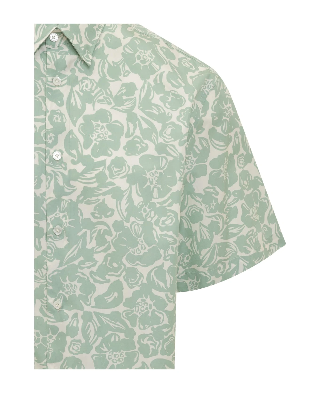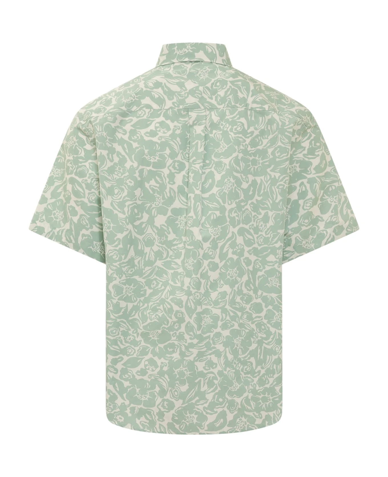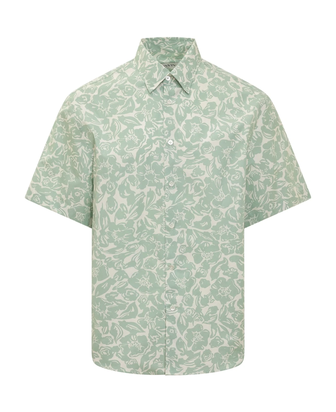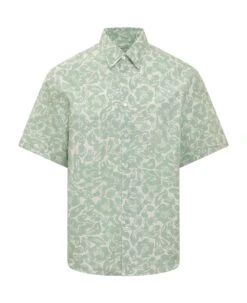 Short sleeve shirt. Regular pointed collar. Button closure. All-over print.