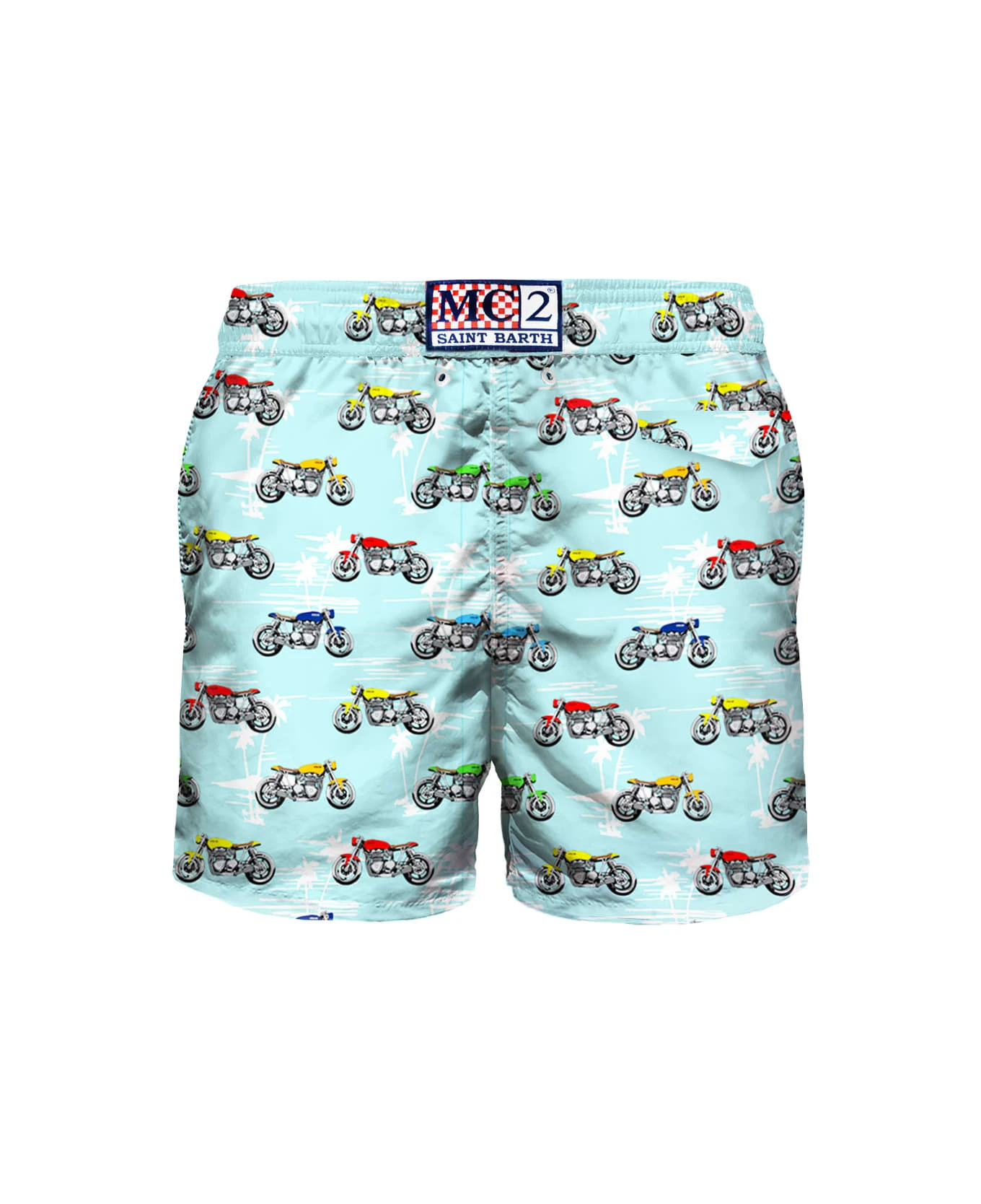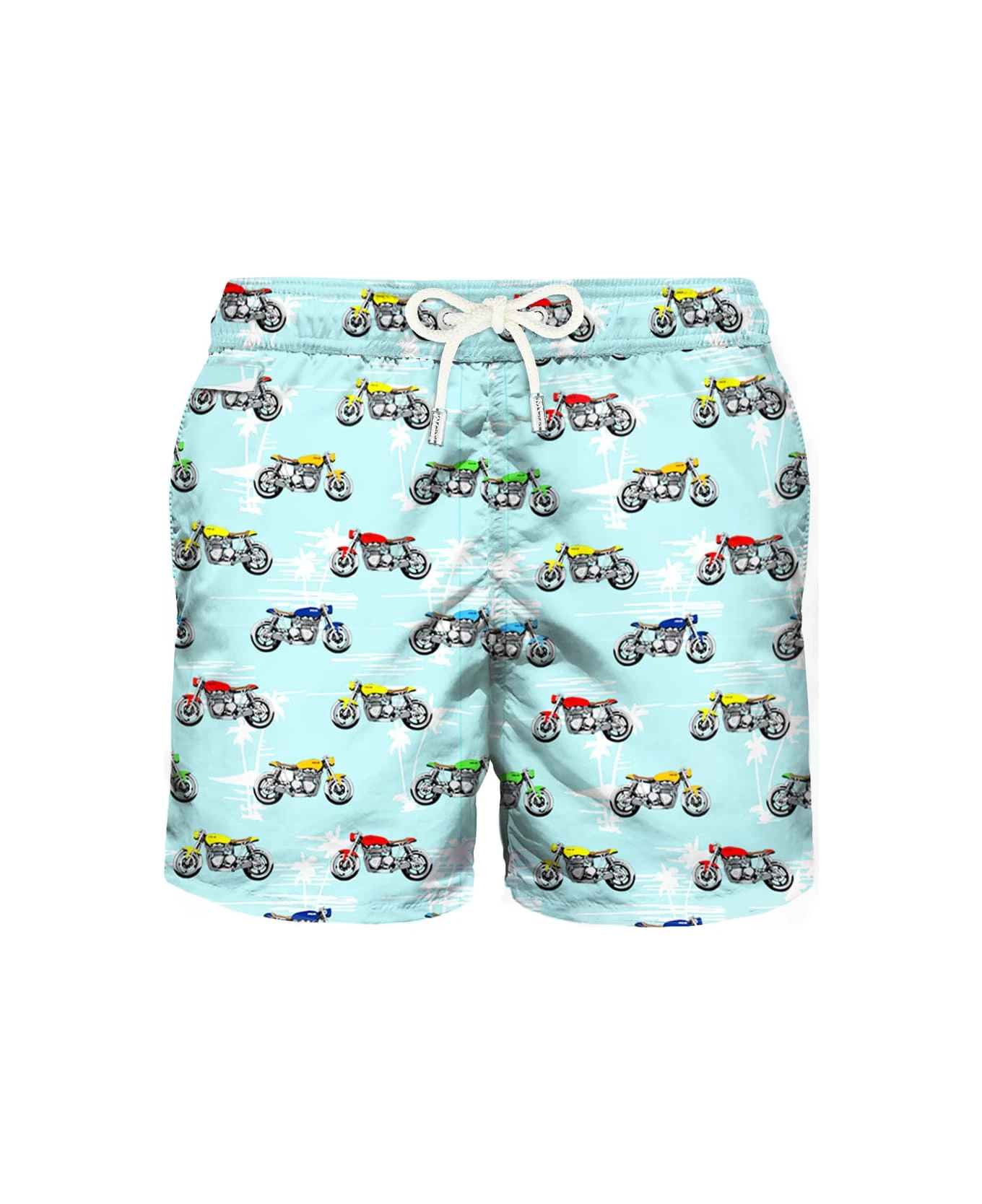 Ultraweight Swim Trunk,MC2 BIKER print, Quick Drying, mid-lenght, regular fit, inside ergonomic brief, drawcord closure, backside pocket with magnetic closure. The swim trunk can be folded into the back pocket turning into a perfect travel pouch. CARE INSTRUCTIONS