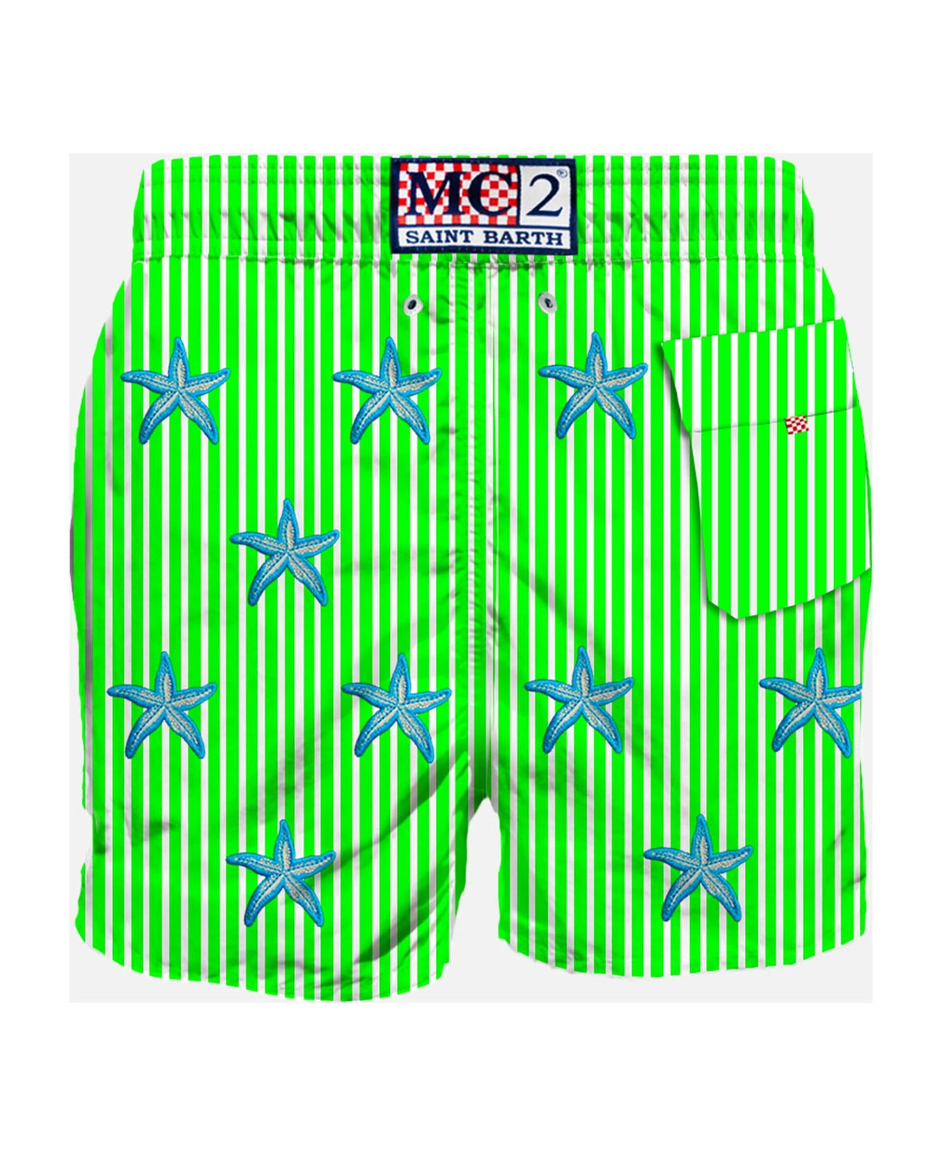 Starfish embroidery on striped print