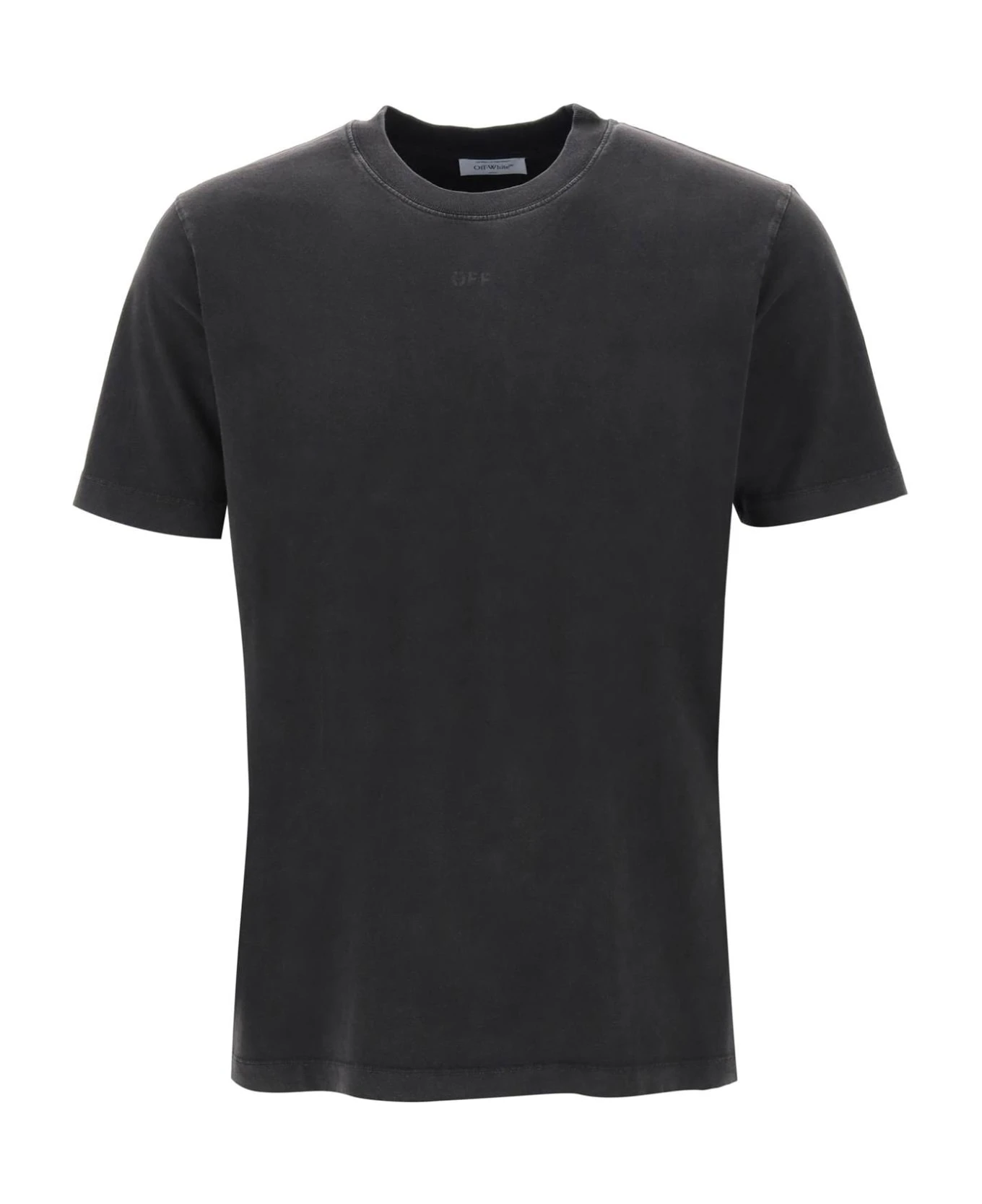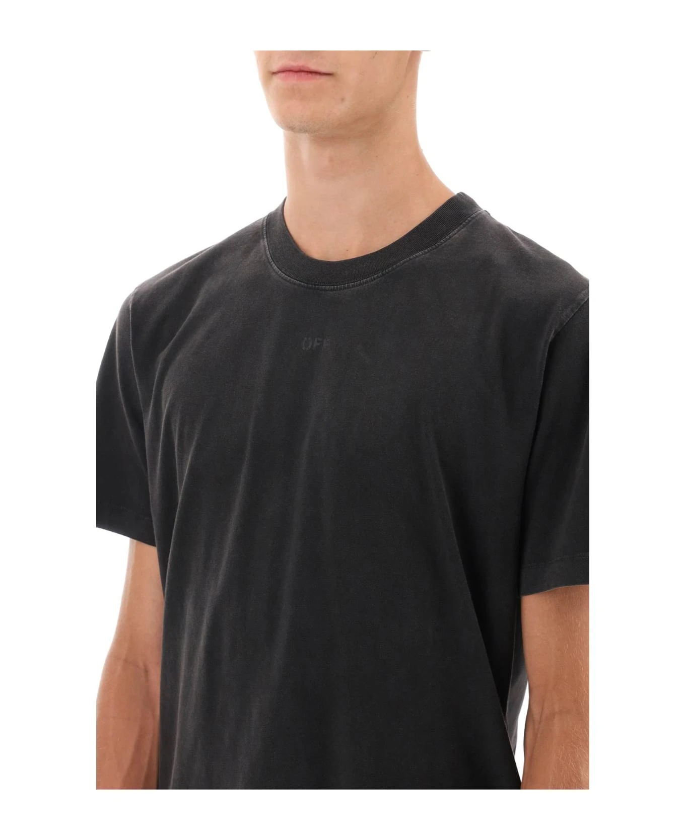 Off White T-shirt crafted in shaded-effect cotton jersey with Arrow Super Moon motif printed on the back. It features ribbed crew neck. Regular fit. The model is 187 cm tall and wears size L.