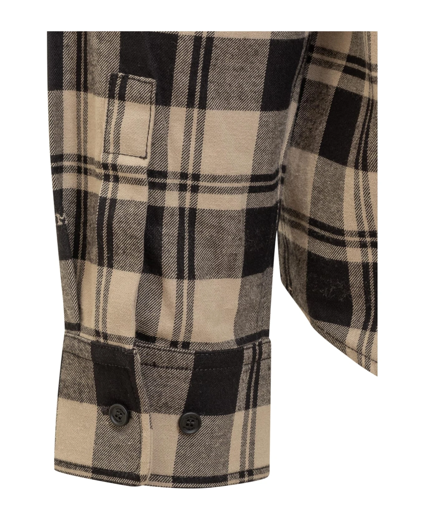 Long sleeve shirt. Classic collar. Button closure. Button cuffs. Two chest pockets. All-over embroidered logo. Check Flann reason.