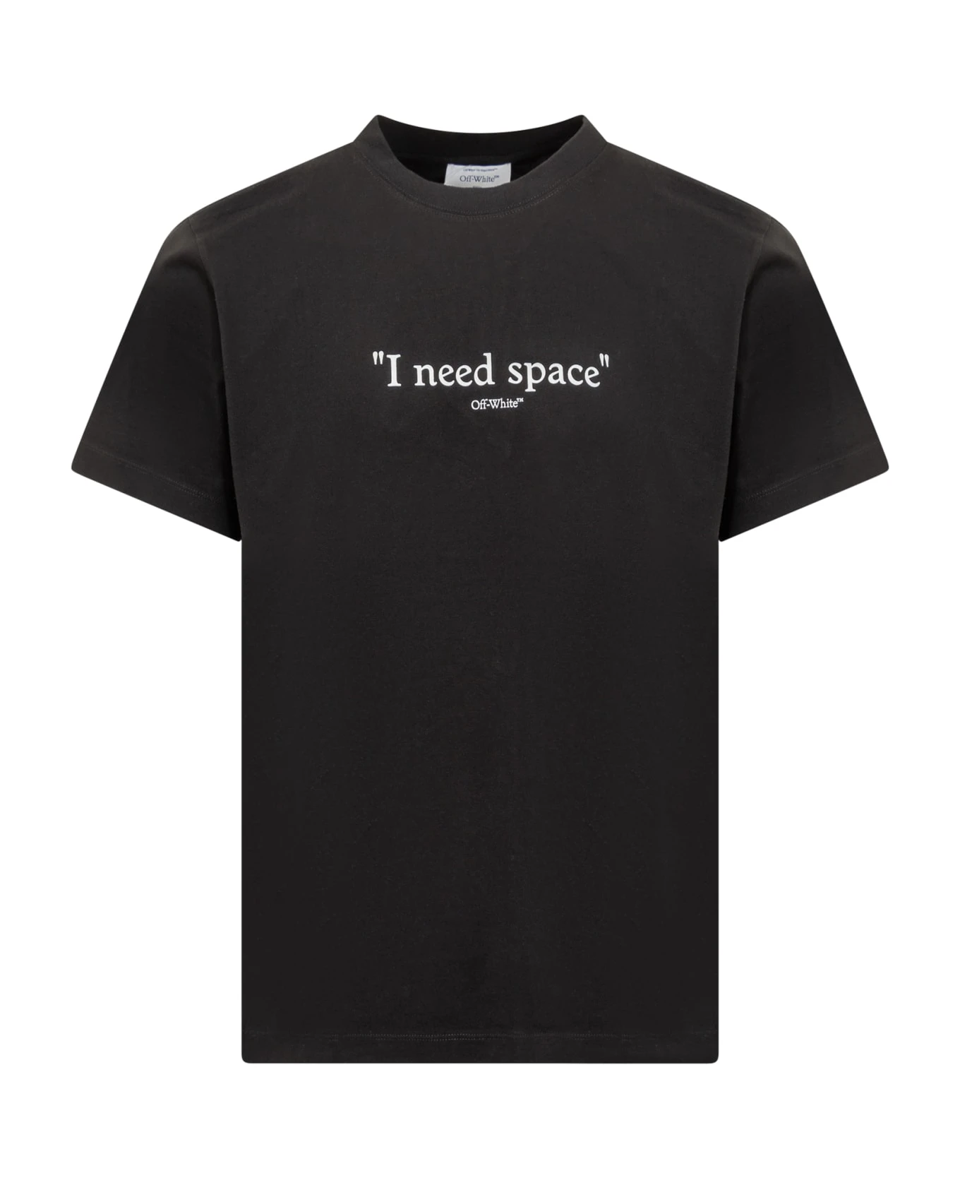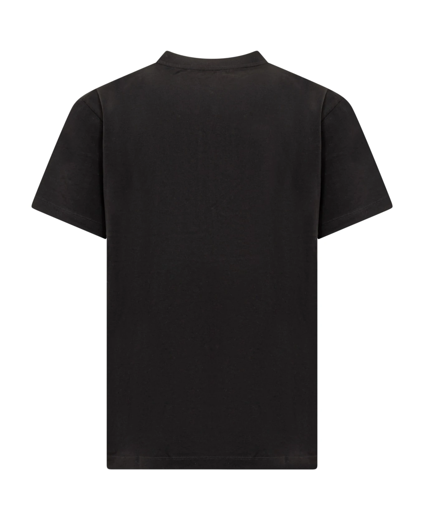 Black T-shirt. Crew neck. Print on the front. Ribbed collar.