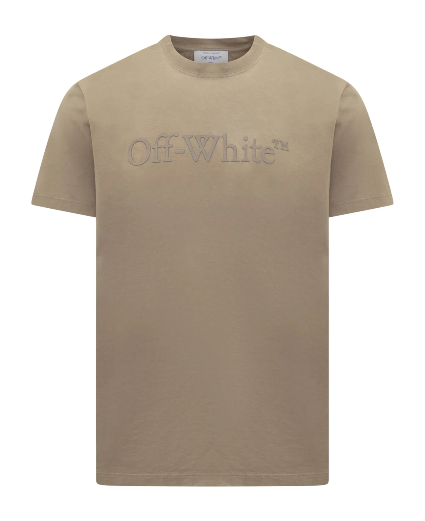 Beige T-shirt. Crew neck. Logo printed on the front. Ribbed collar.