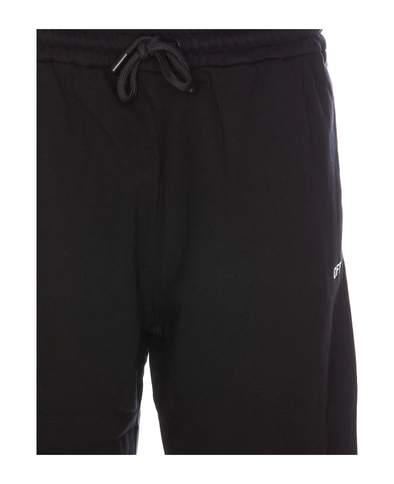 Off White black track pants, coulisse closure, elasticized on waist, lateral pockets, embroidered logo on the front, lateral pcokets