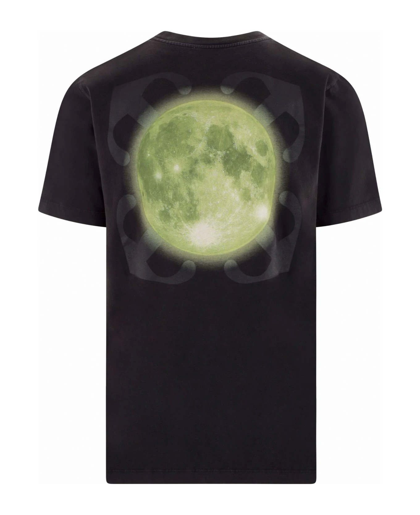 Super Moon black cotton T-shirt, logo print to the front, graphic print to the rear, crew neck, short sleeves, straight hem
