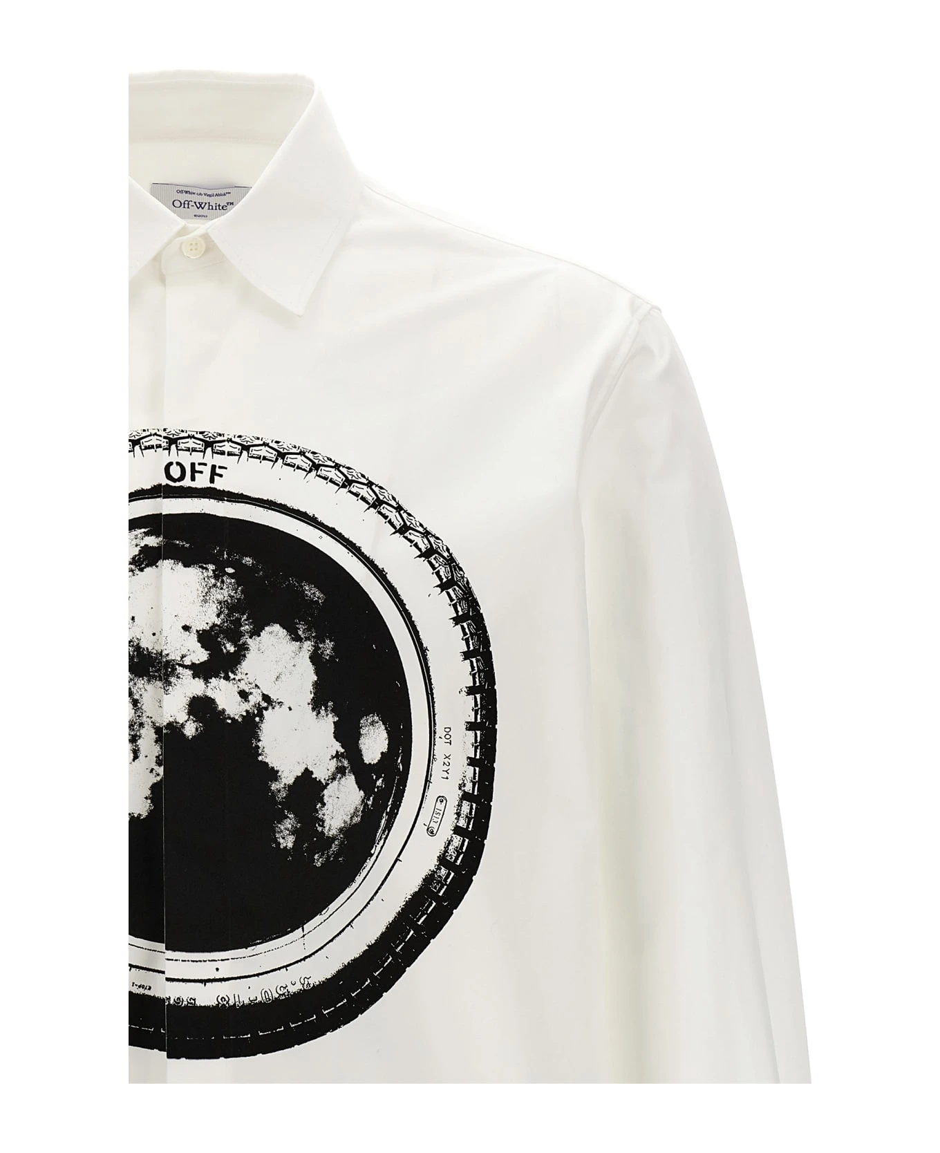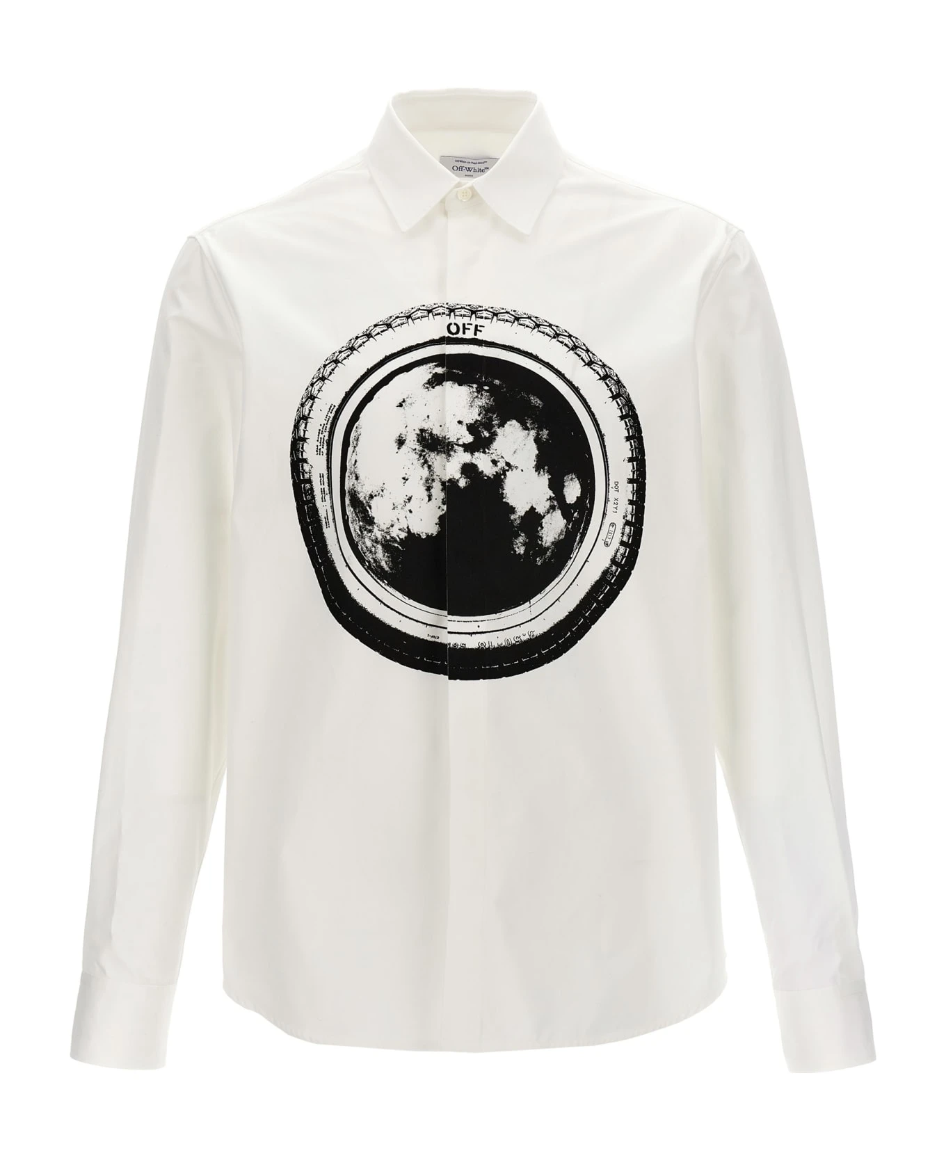 ‘Tyre moon’ cotton poplin shirt with covered button closure and contrast front print.