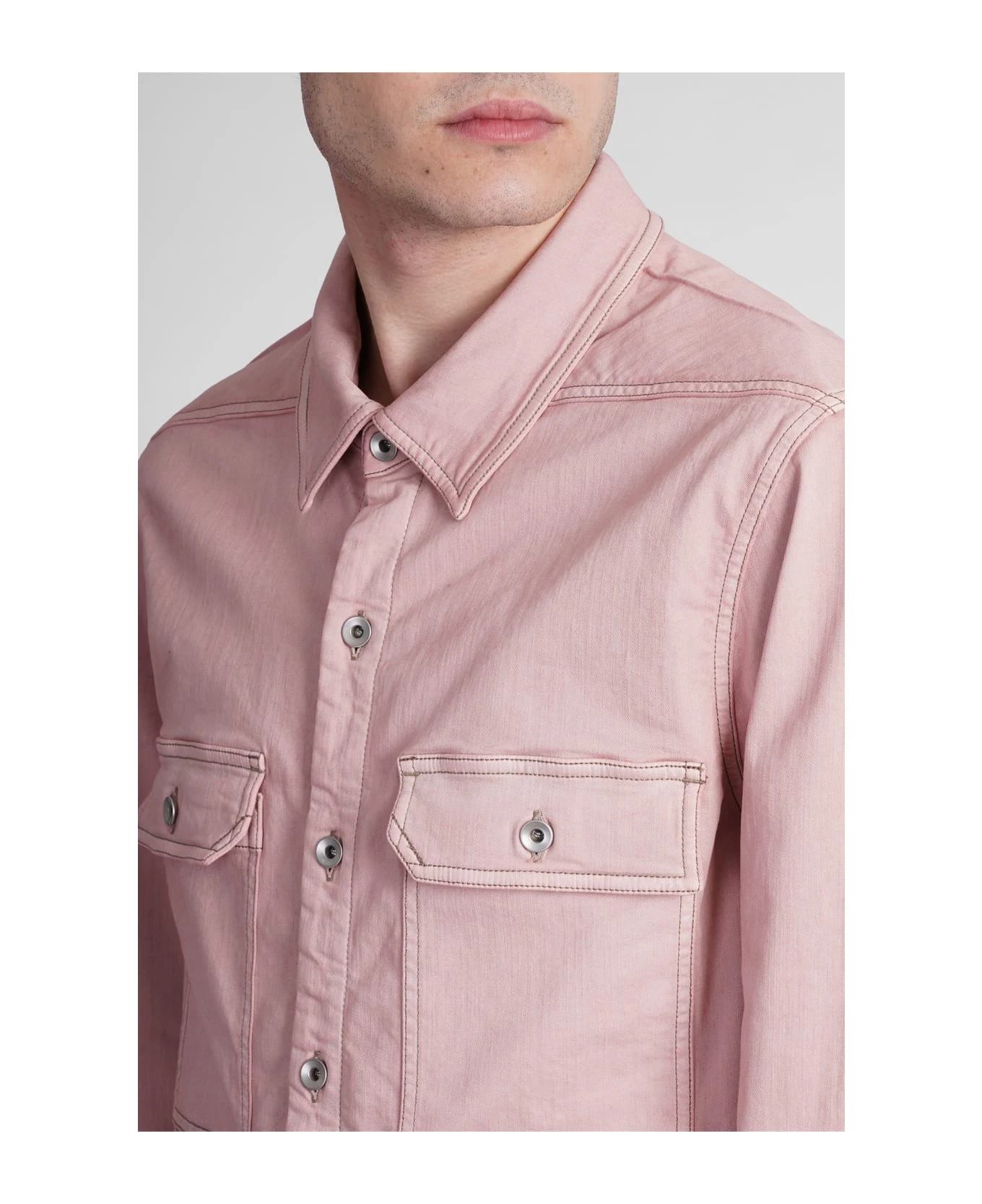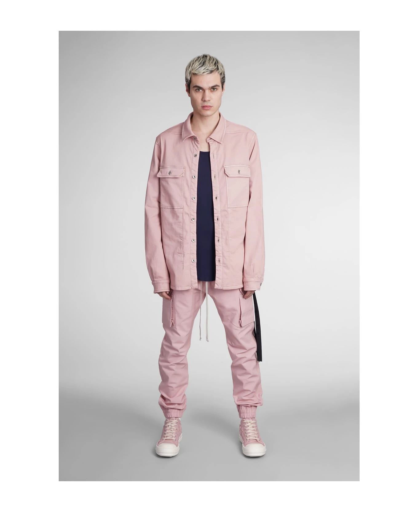 Outhershirt Shirt in rose-pink cotton, collar, long sleeves, frontal buttoning, flap pockets, 90% cotton, 7% Polyester , 3% rubber fiber, Made in Italy, Model is 1. 83 and wears size M