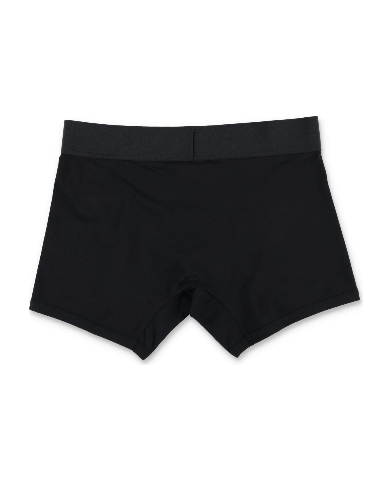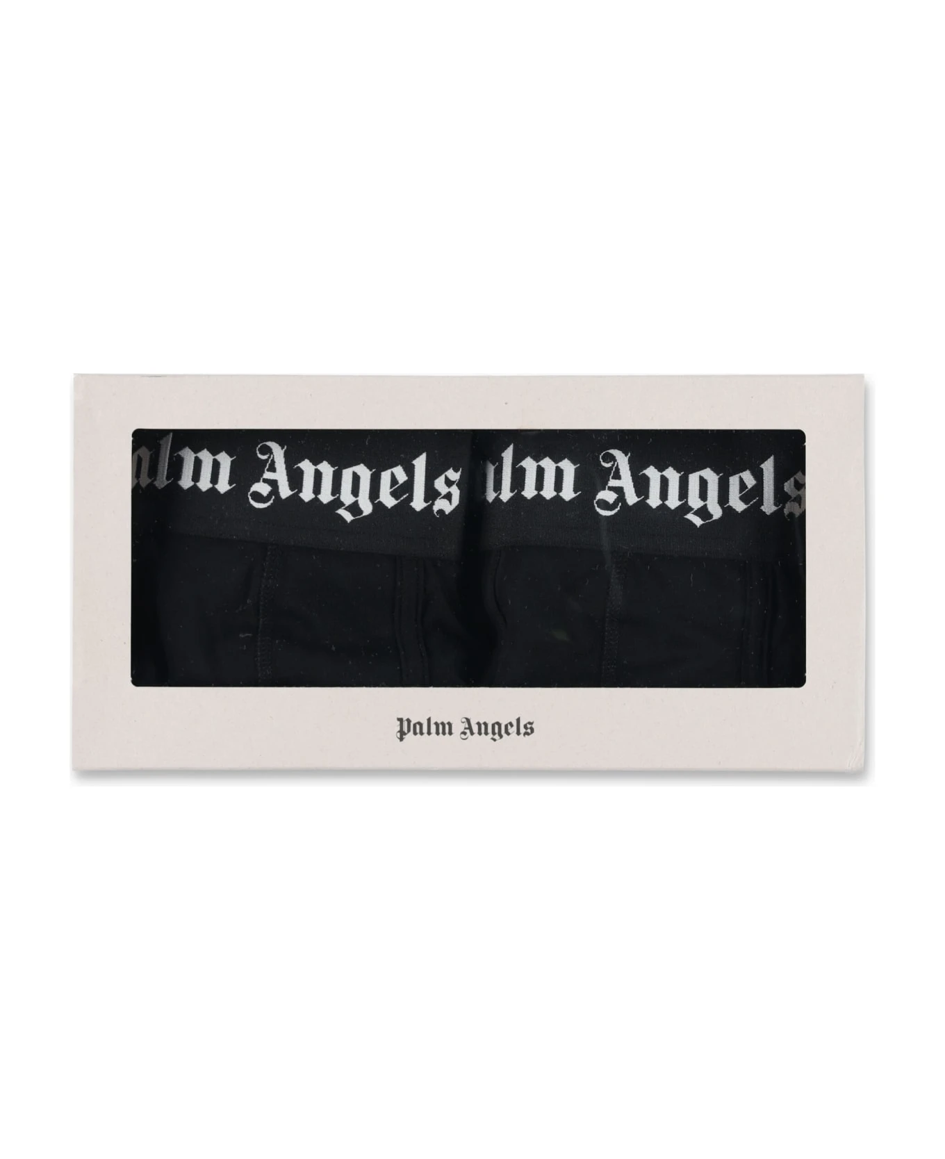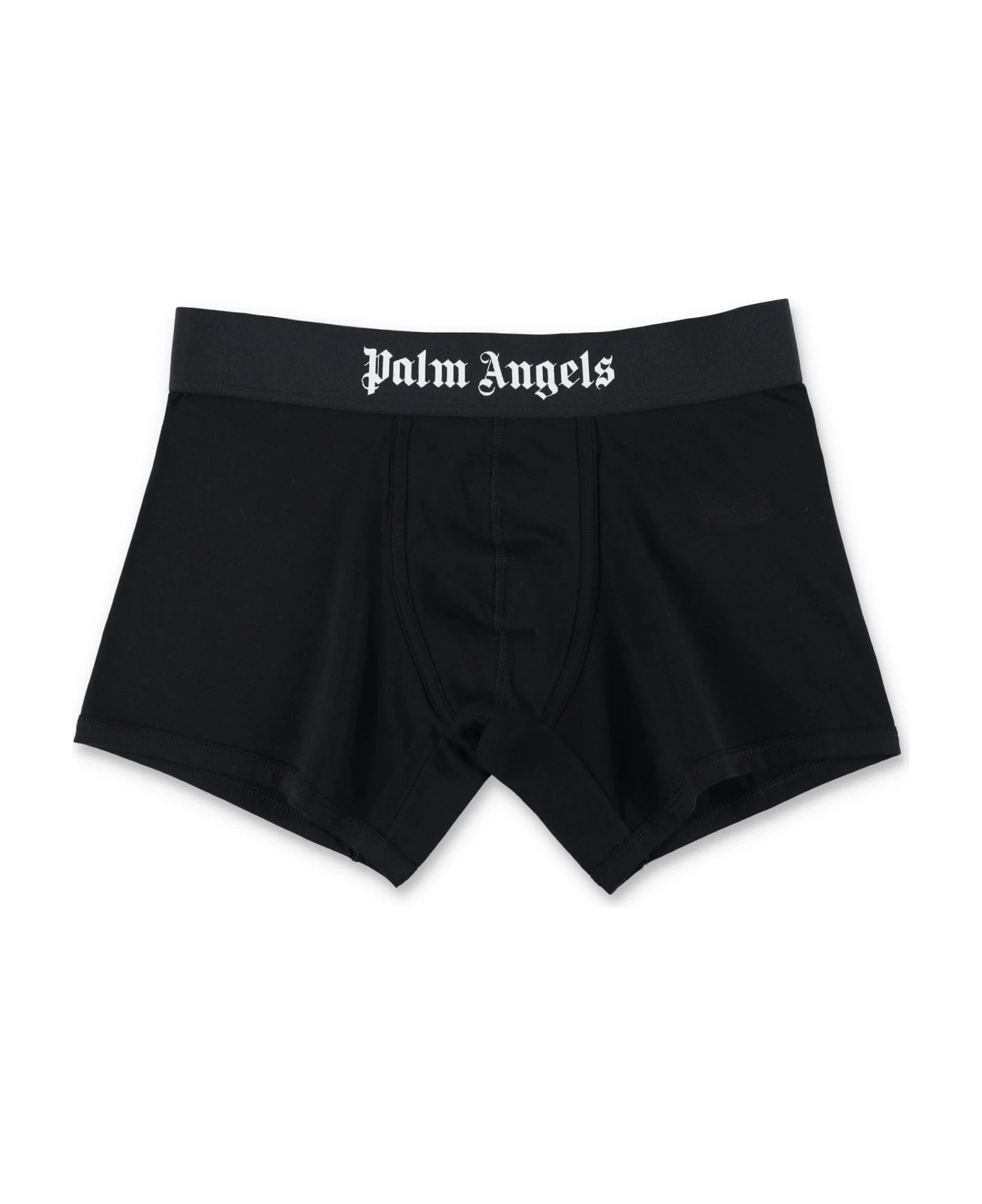Black Trunks With Black Elastic Waistband And Palm Angels Logo In White