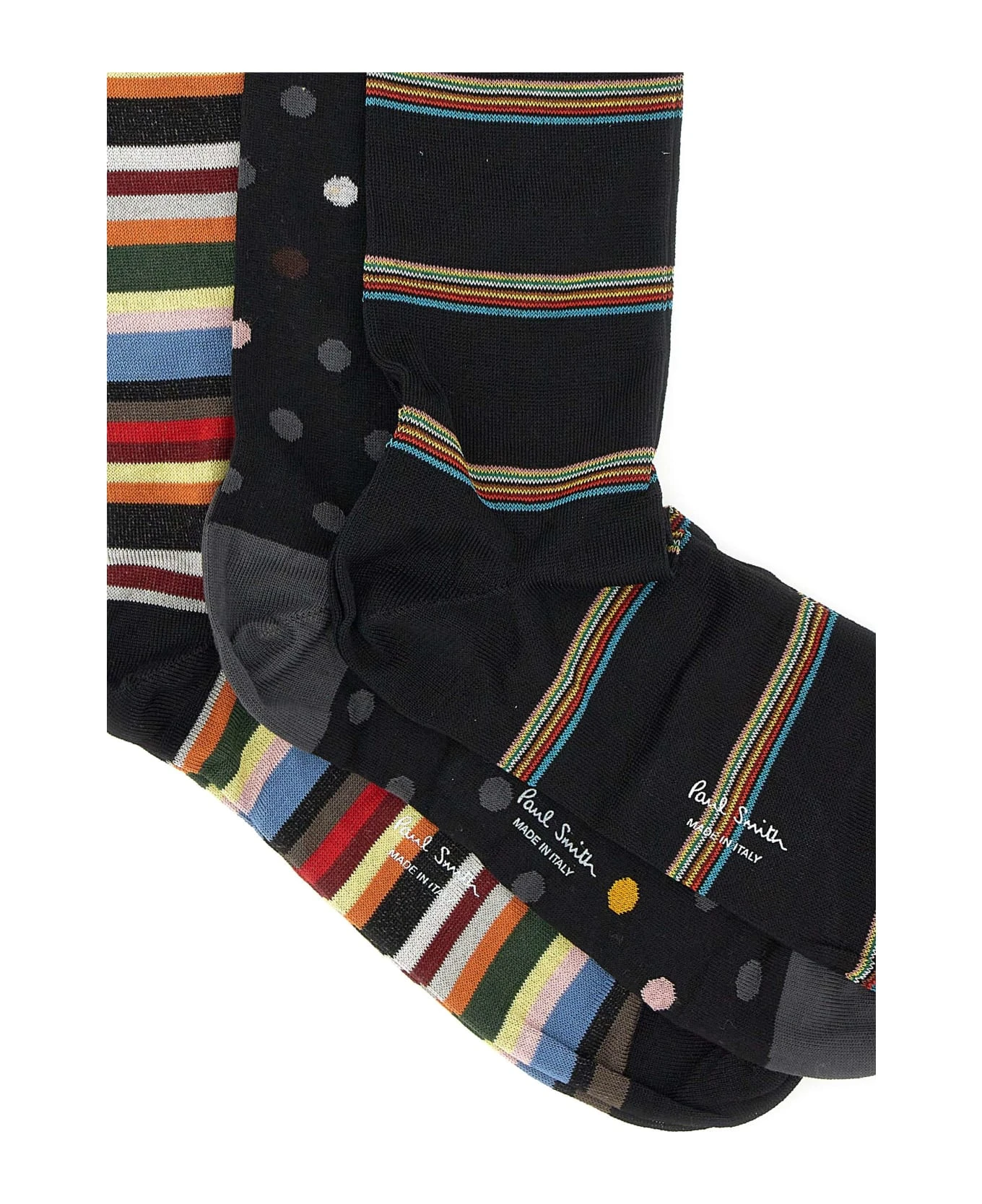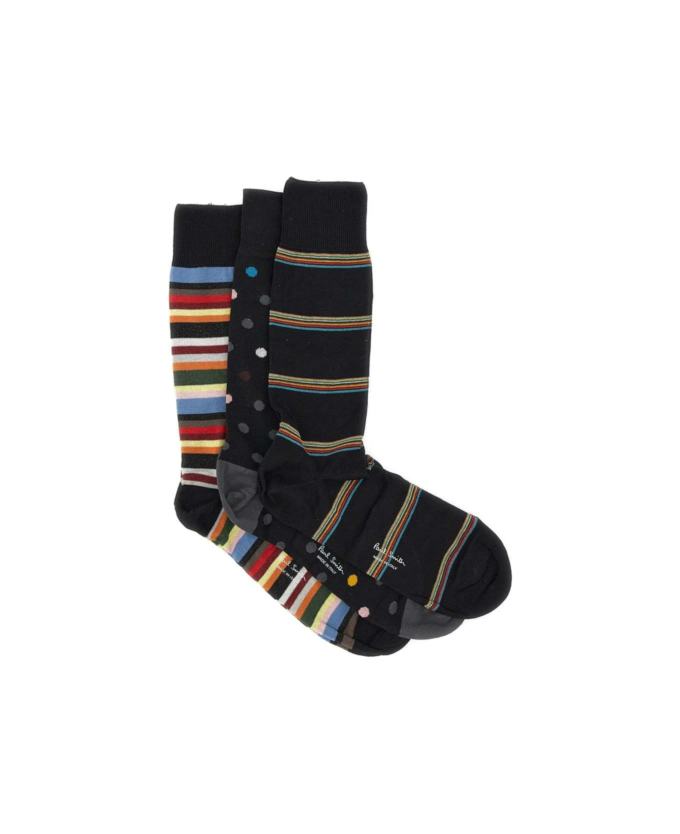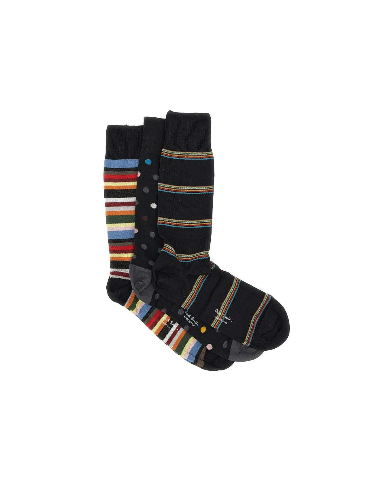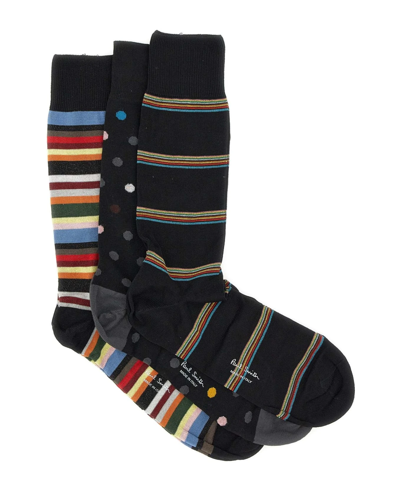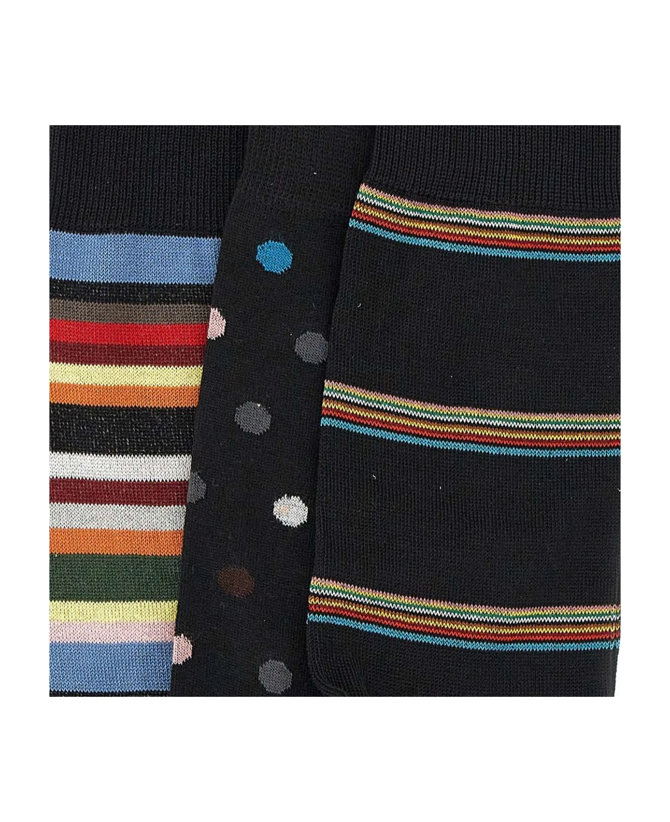 Set of three Paul Smith men’s cotton socks, stripes and polka dots, multicolour, Paul Smith gift box. One size. Made in Italy