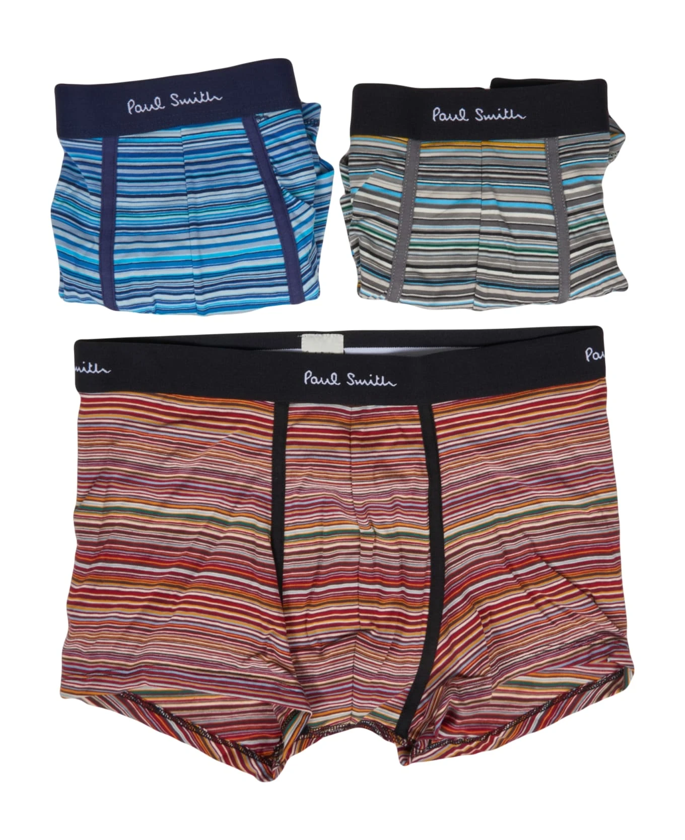 Three multicolor boxer shorts. Logoed elastic. Composition: 95% cotton 5% elastane. Made in Bangladesh.