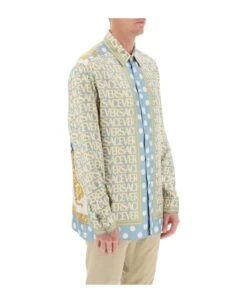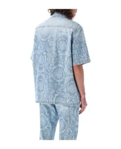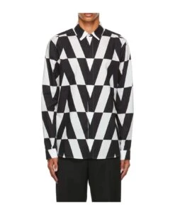 Striped cotton shirt with ‘RWB’ detail on the sleeves, front pocket, button closure, and long cuffed sleeves.