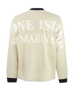 Classic collar. Striped details. Front button fastening. Long sleeves. Logo patch at the chest. Ribbed details. Tonal stitching. Slim fit. Straight hem. Color: white