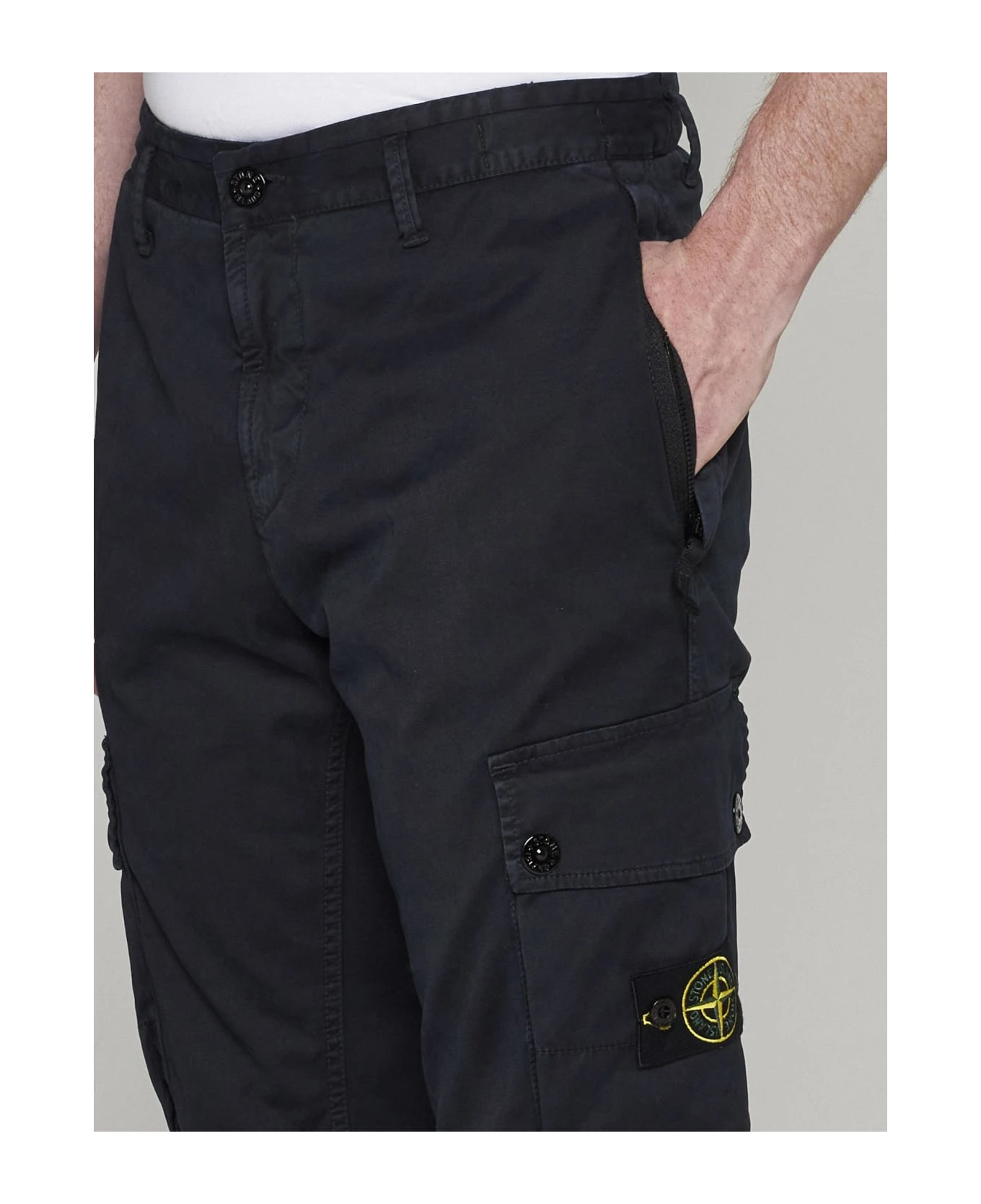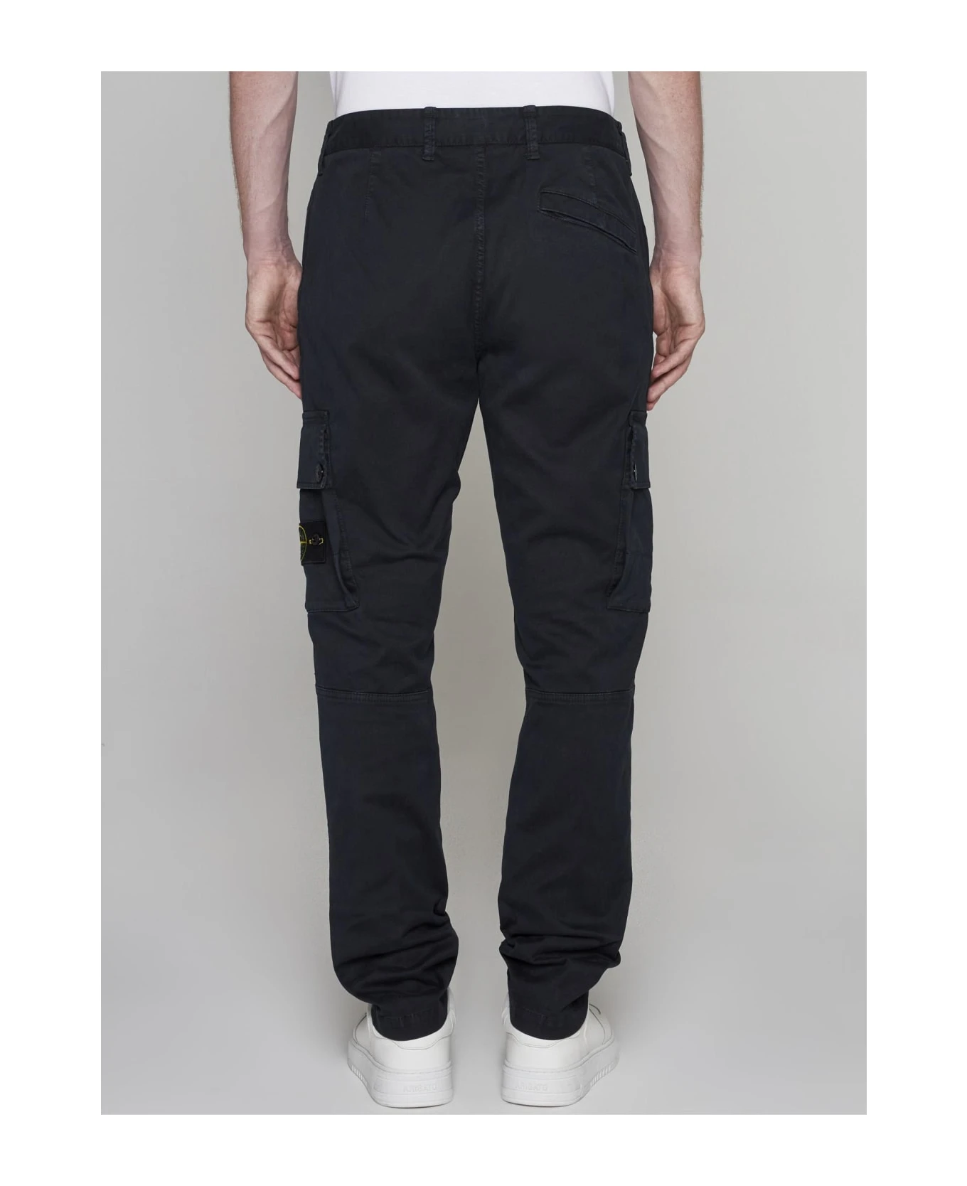 Stone Island’s slim-fit cargo pants in navy blue stretch cotton featuring belt loops, button and zip fly, side pockets, back welt pocket and large pockets along the legs with turn-ups, buttons and logo-label.