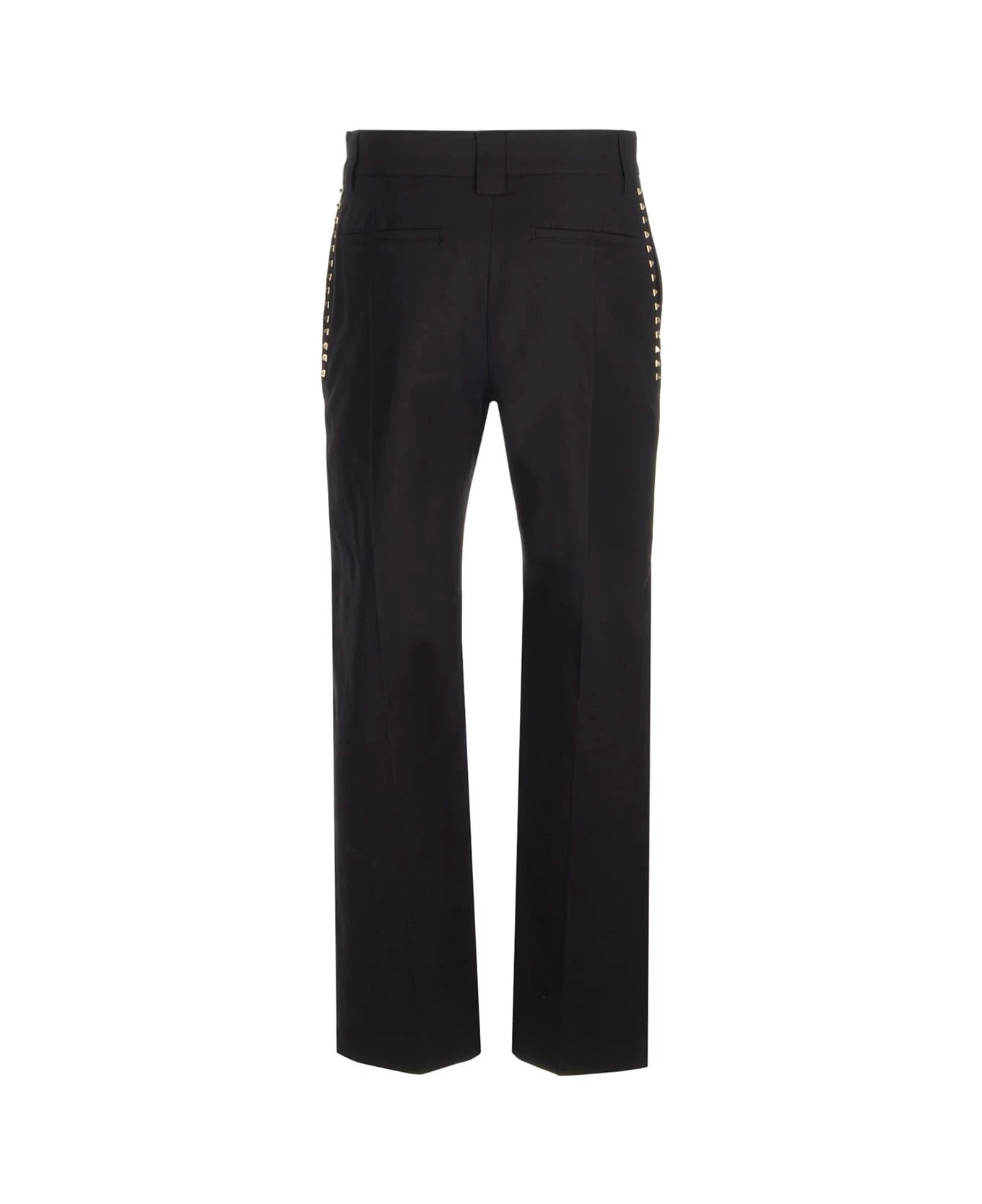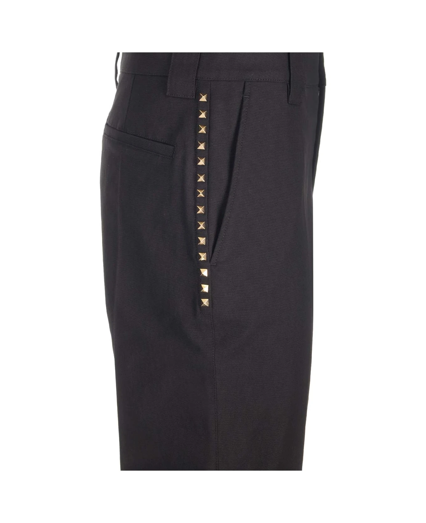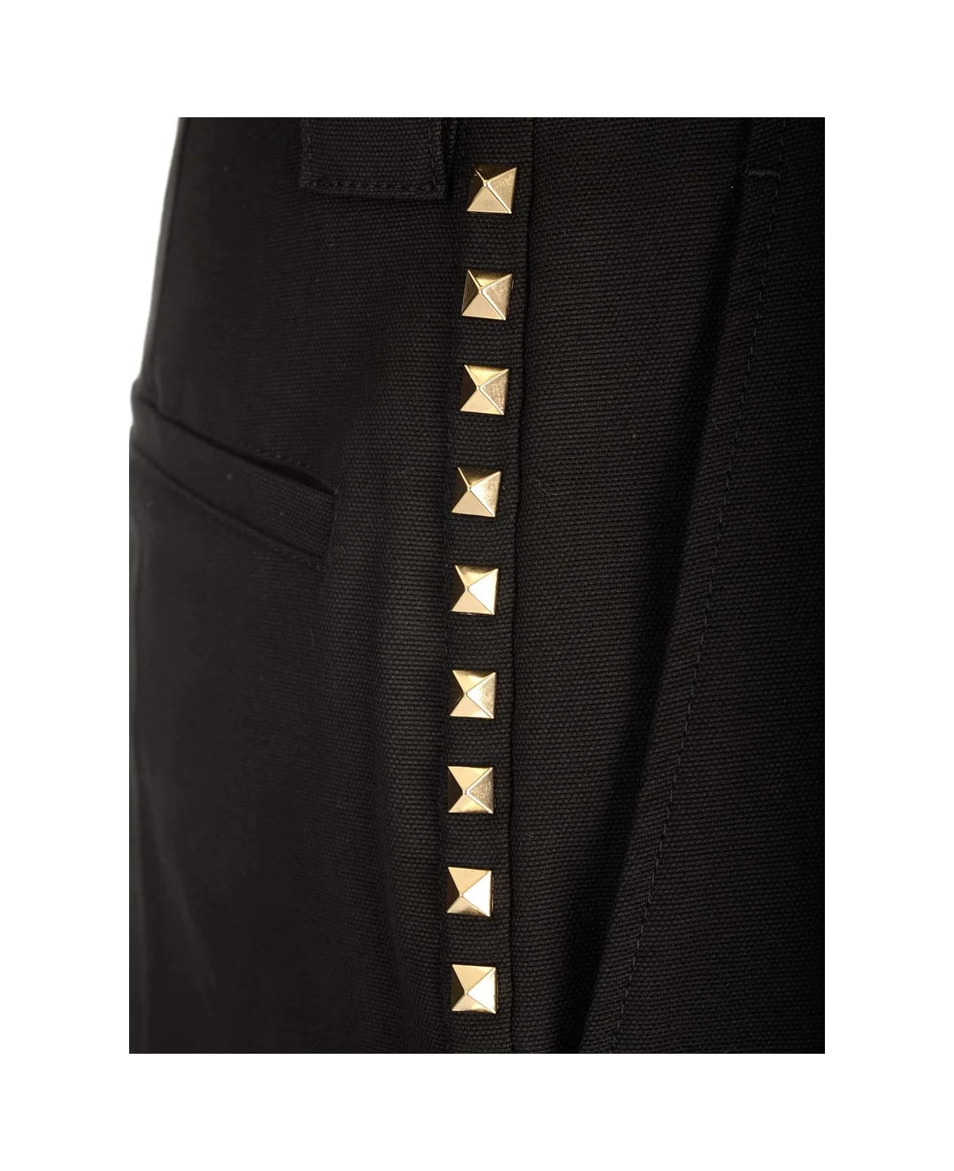 Medium-waisted black cotton canvas trousers with side Valentino Garavani Rockstuds. Side welt pockets and waist with belt loops.