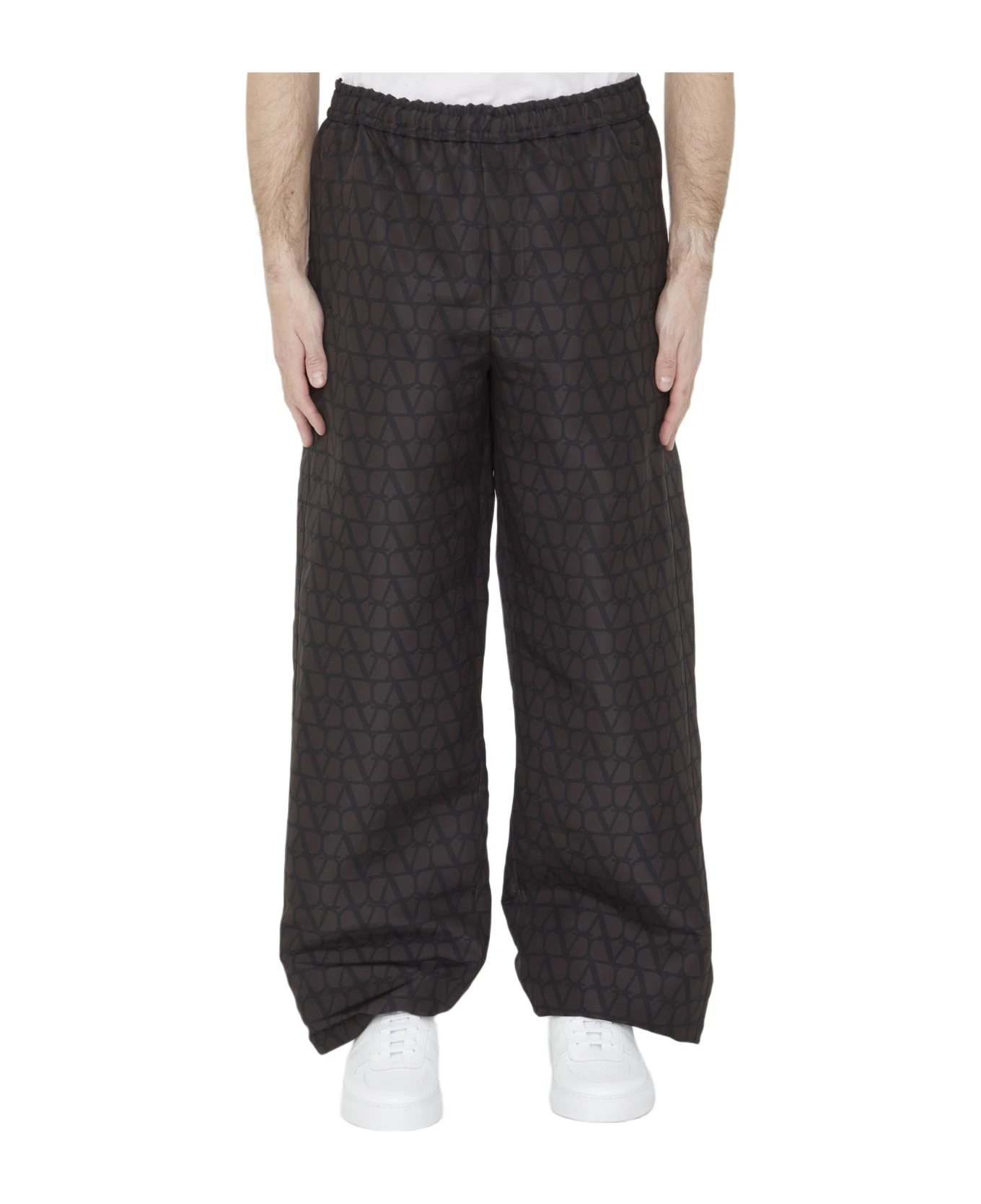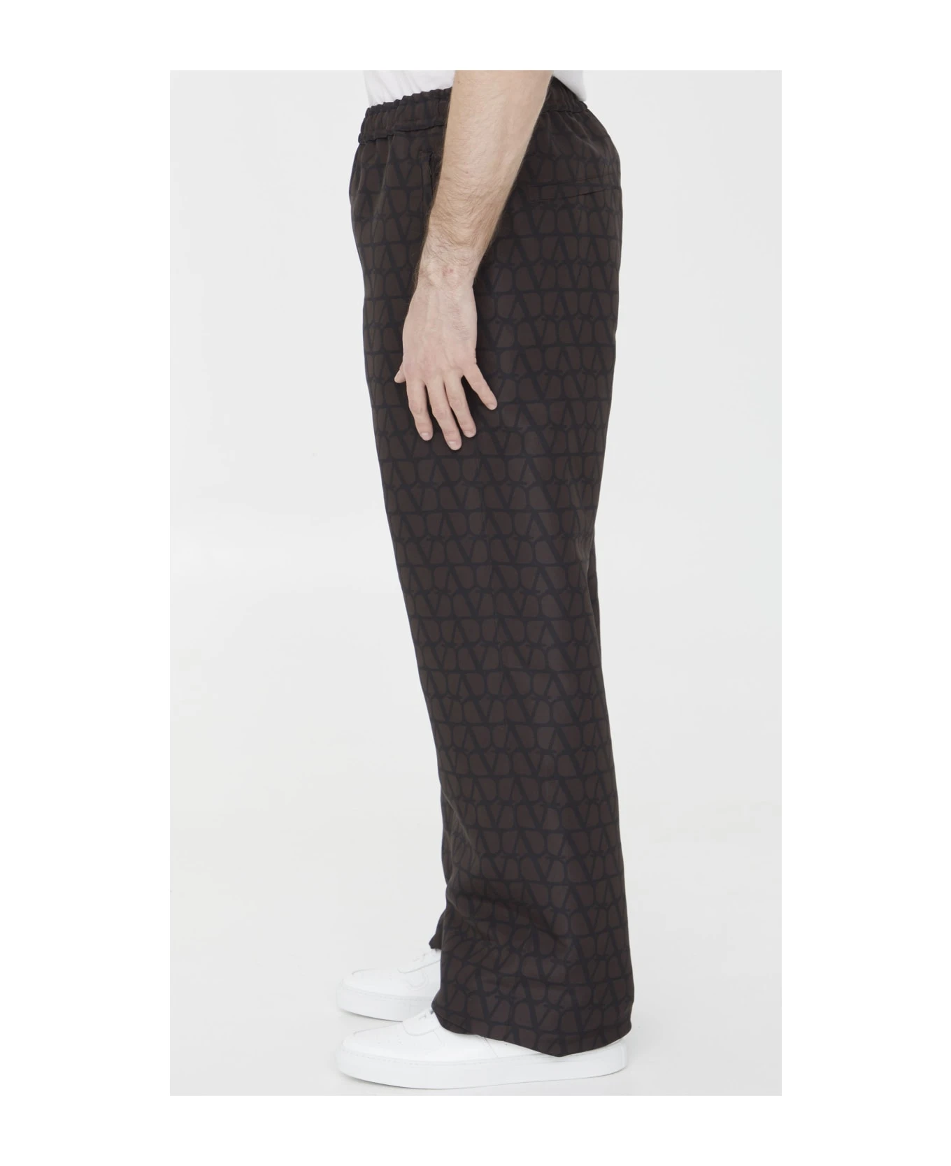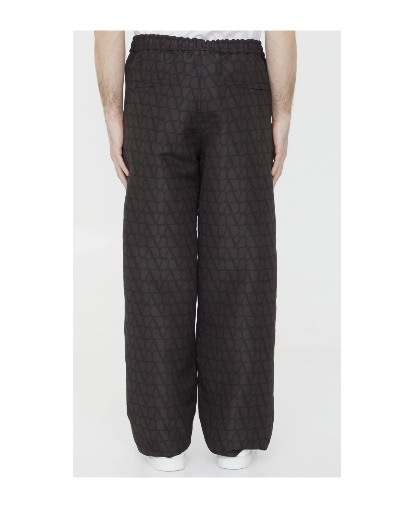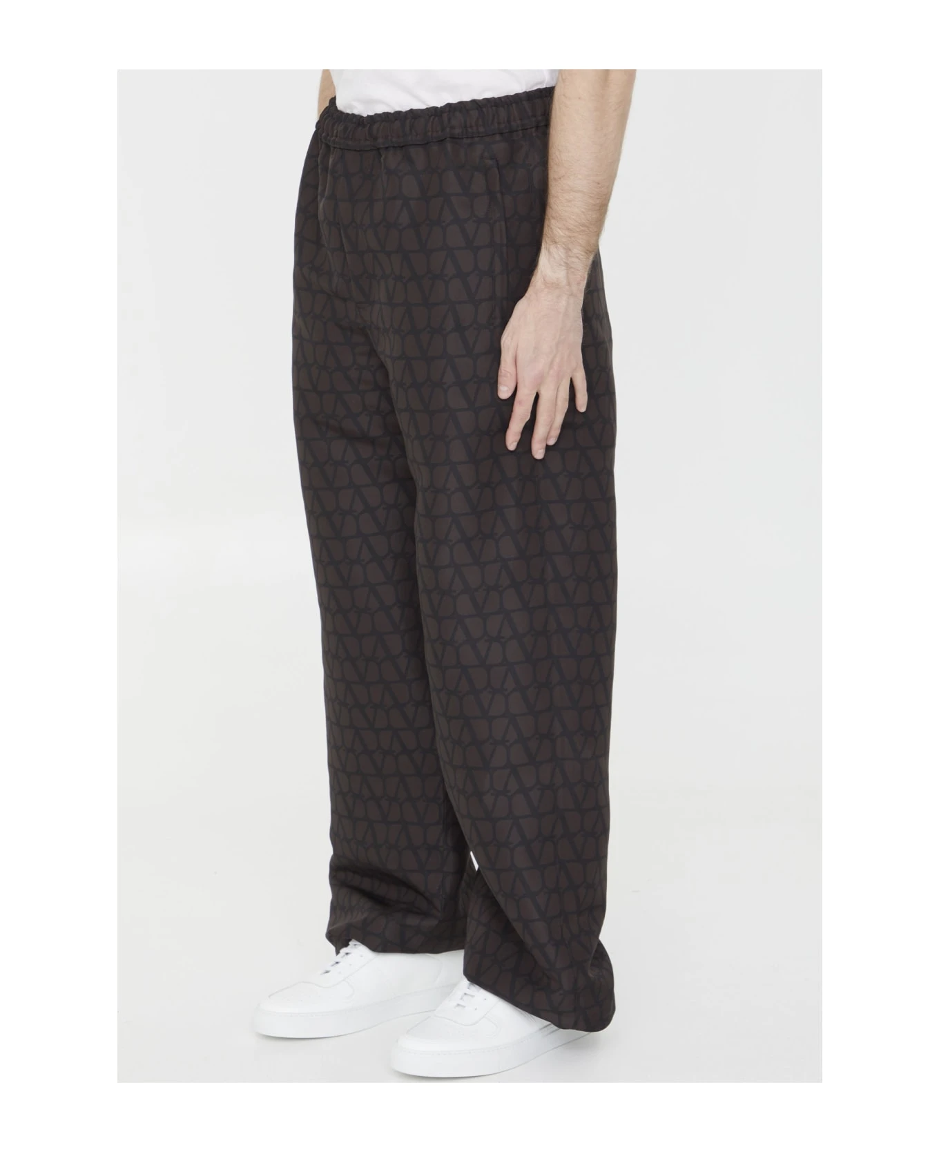 Cargo pants in silk faille with all-over Toile Iconographe motif in the shades of brown and black. It features stretch waistband with interior drawstring, two side zip pockets and two rear welt pockets.