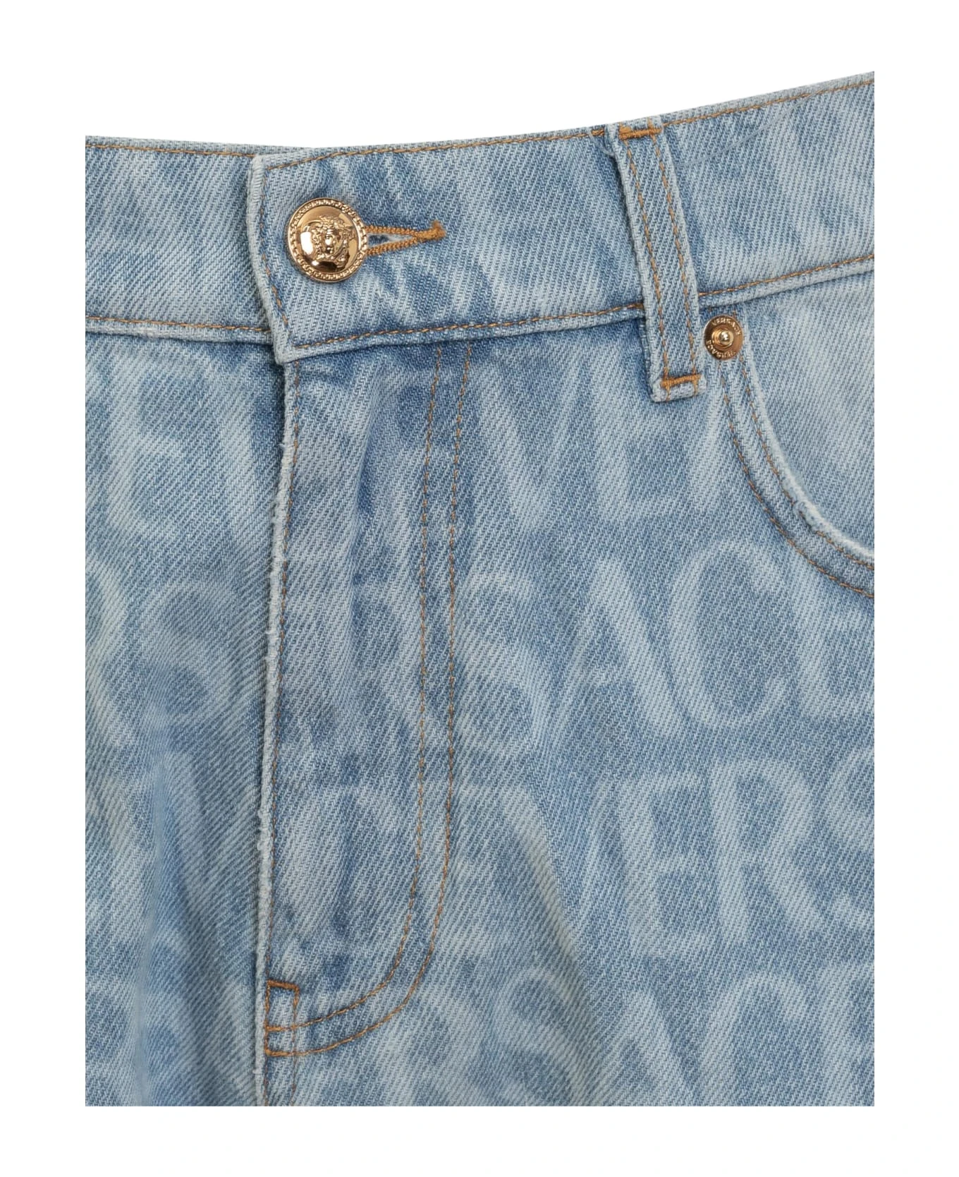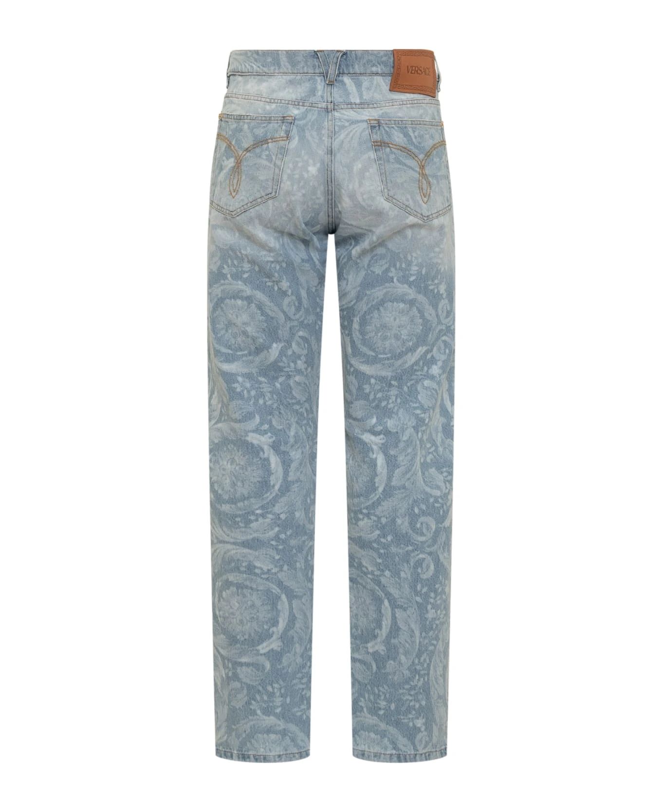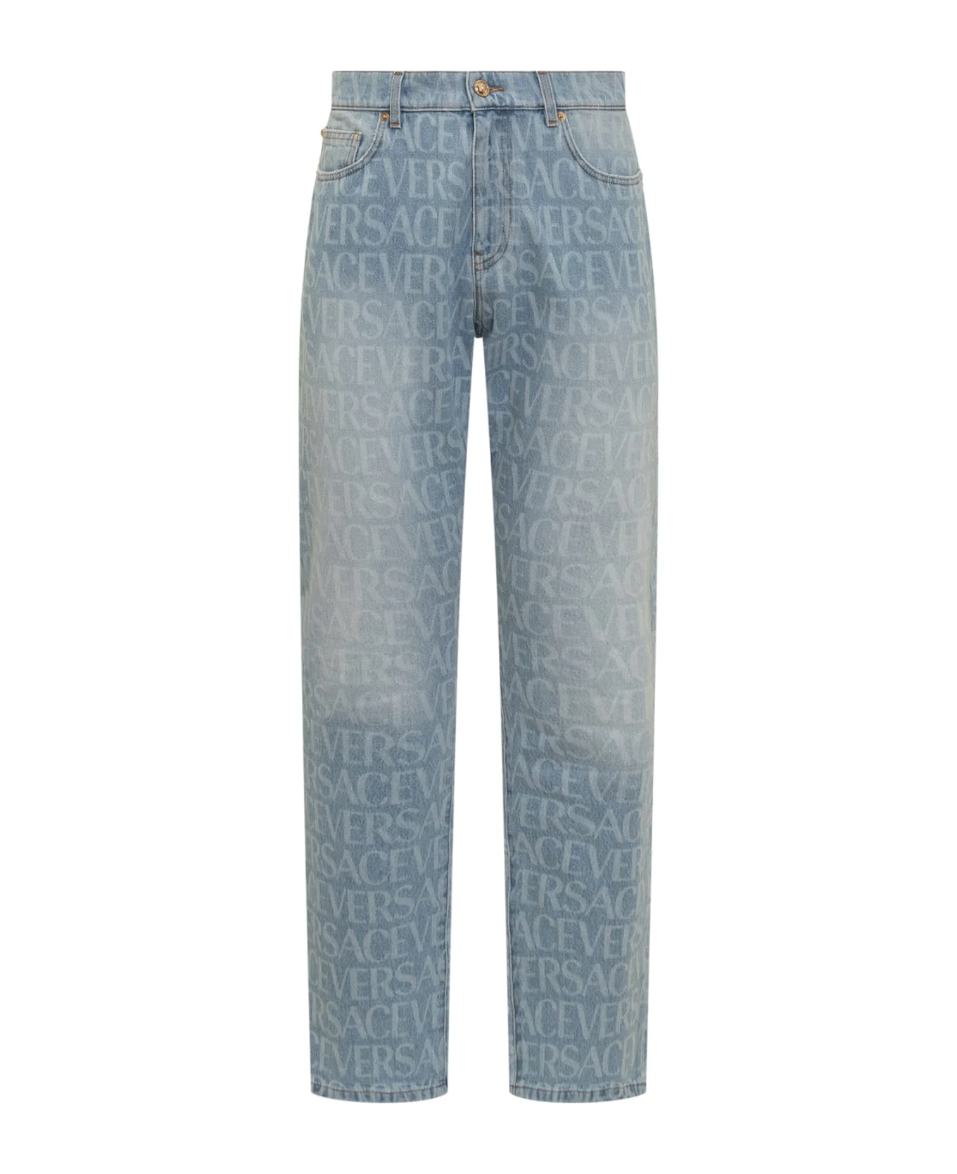 Long jeans. Mitchell fit. Button and zip closure. Belt loops. Five pockets. Medusa button detail. Patch logo on the back. Reason Versace Allover.