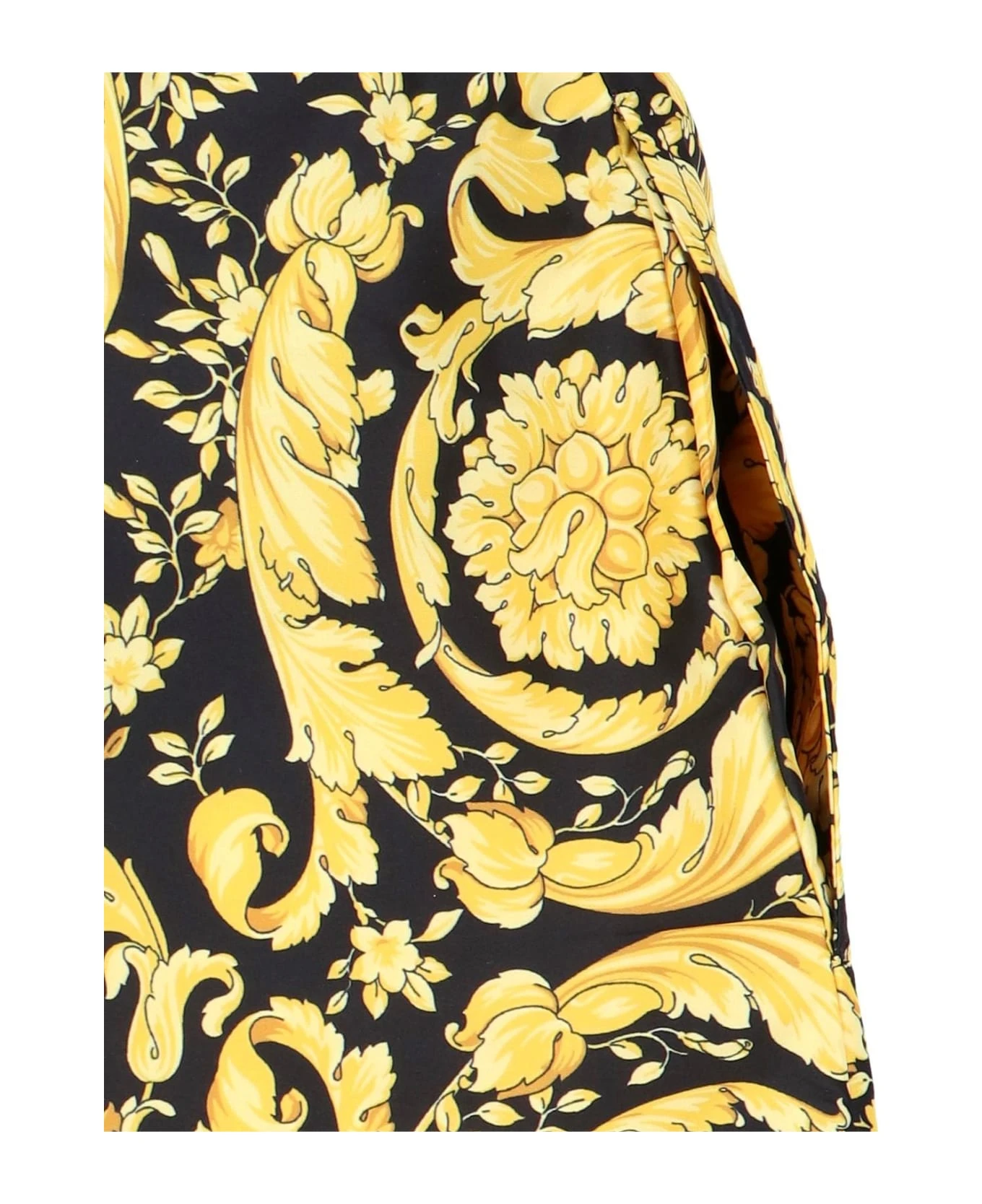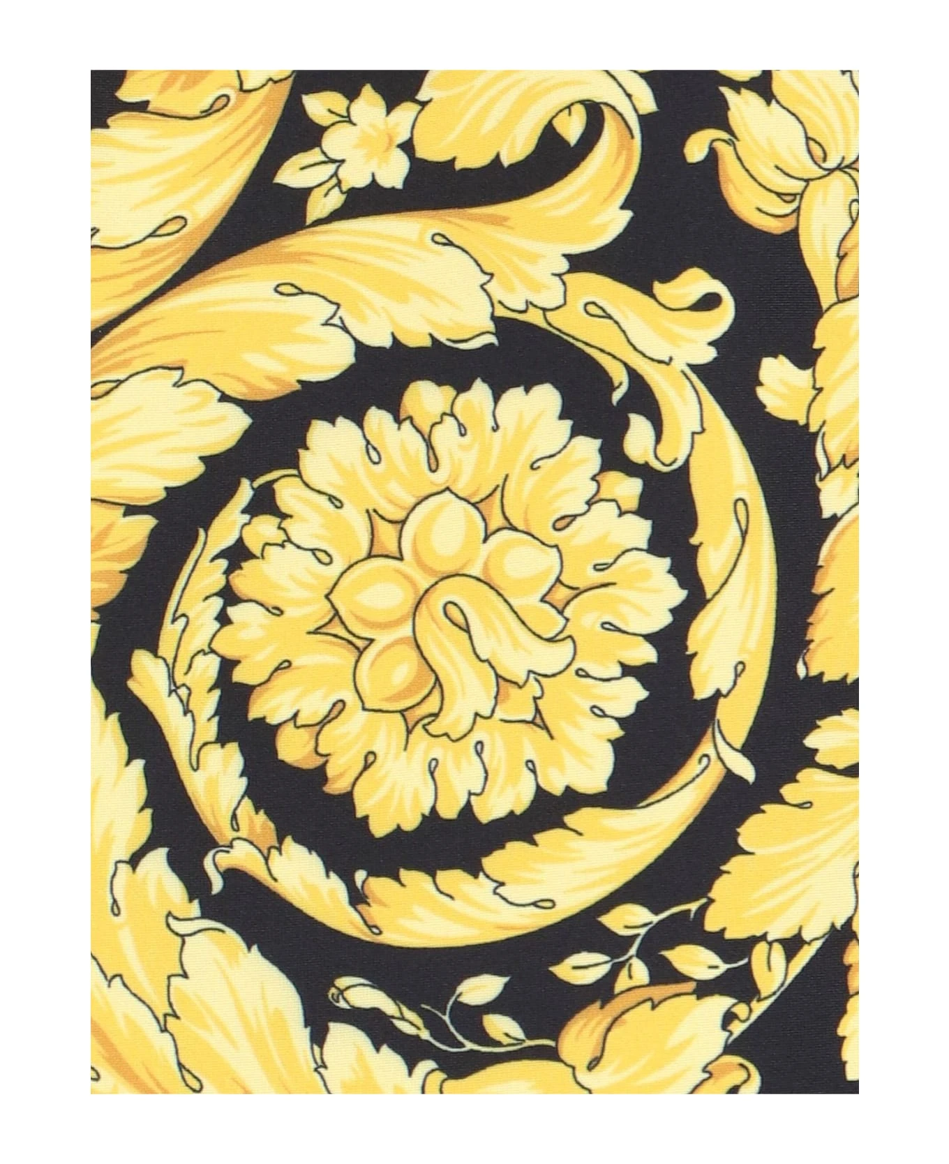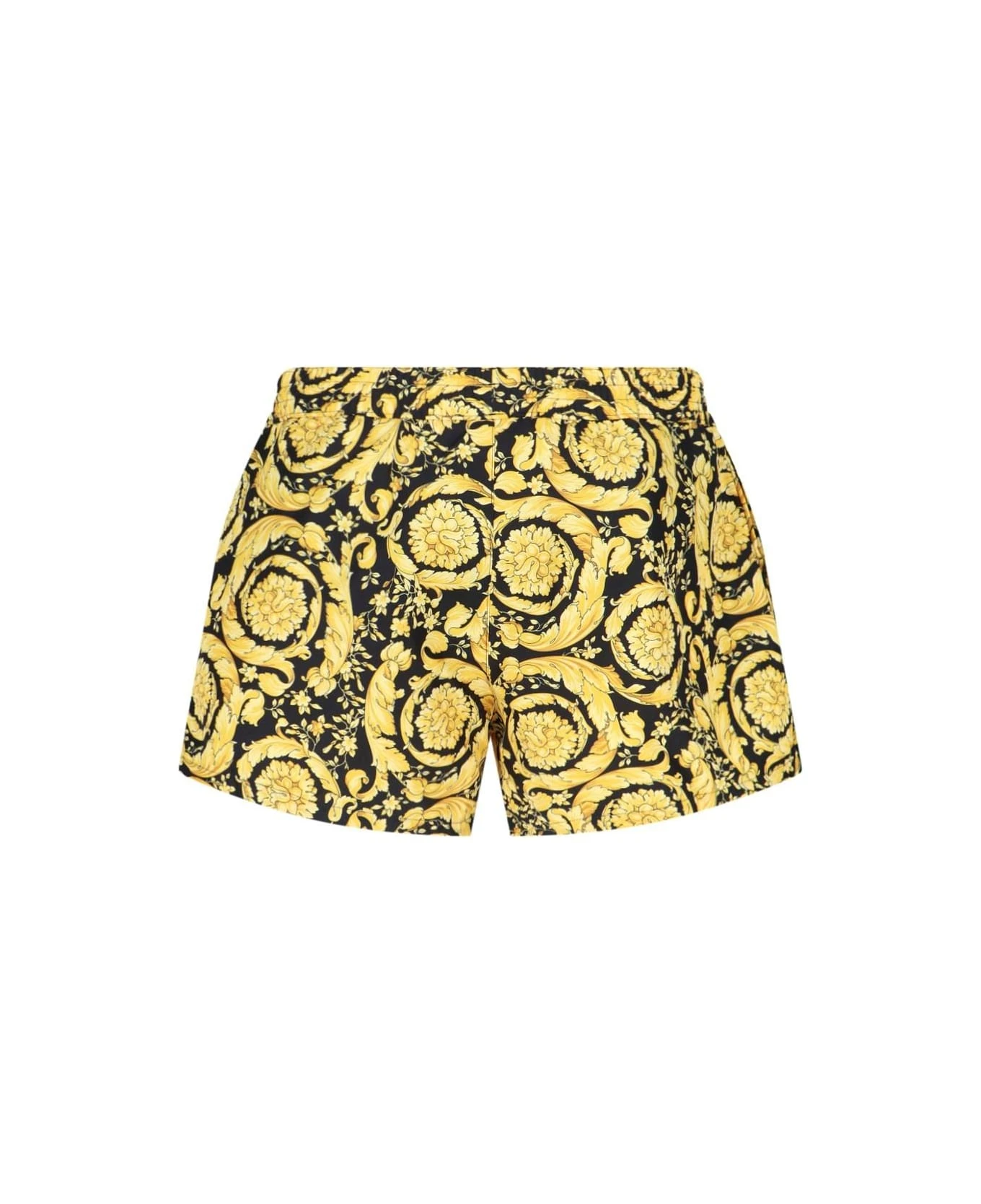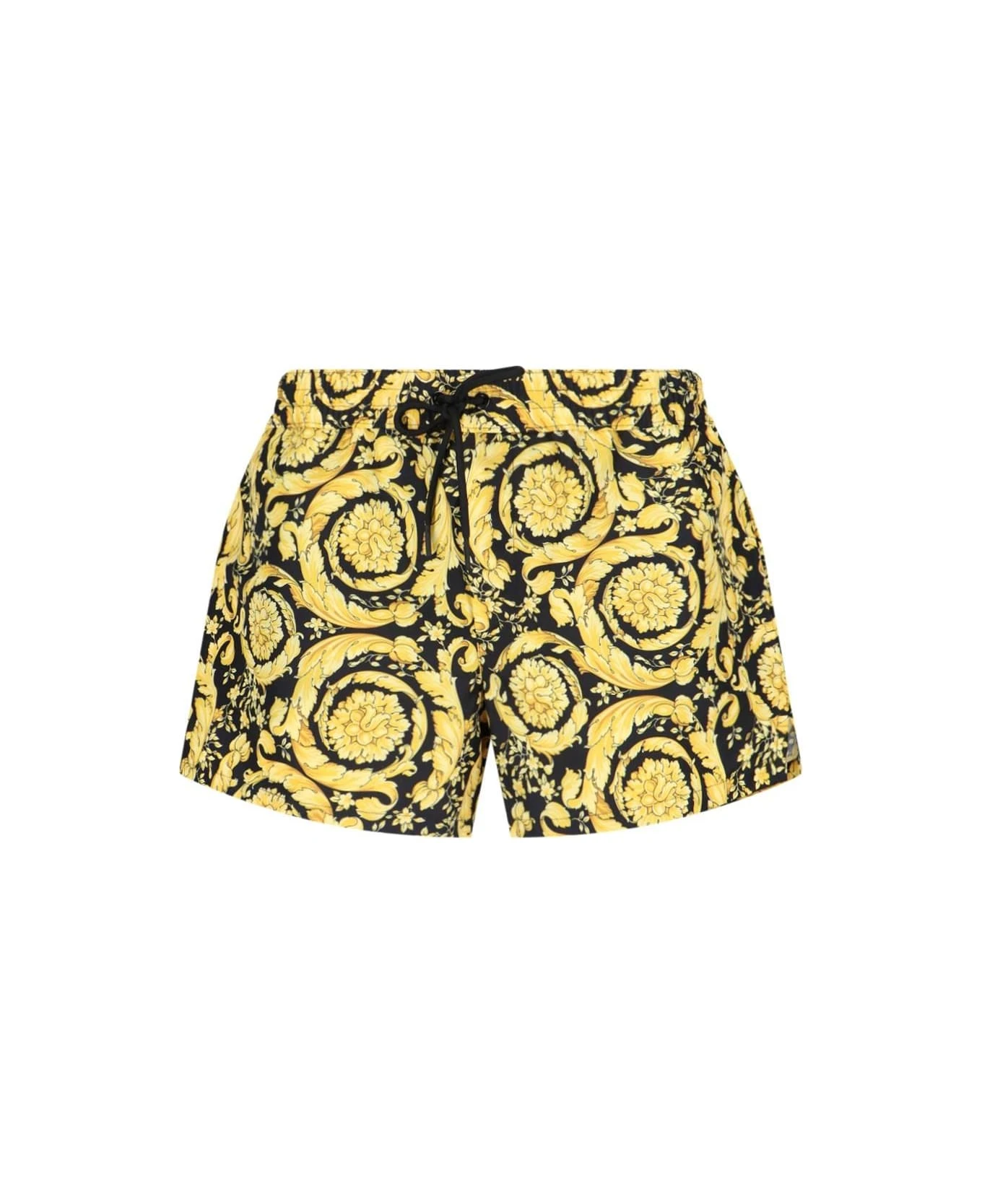 Versace ‘barocco’ swimsuit pants in a gold fabric, with iconic all-over print details, elastic waist, drawstring and straight hem.