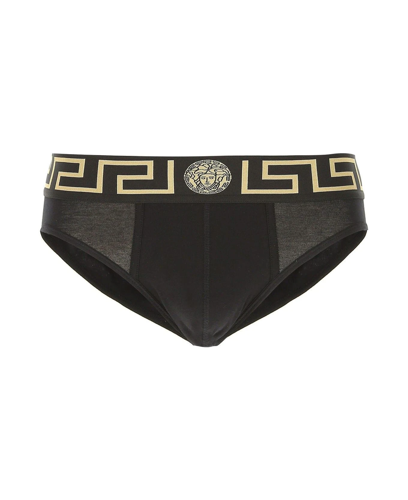 Brief realized in stretch cotton characterized by iconic Head of Meduse and Greek Key embroideries at the waist.