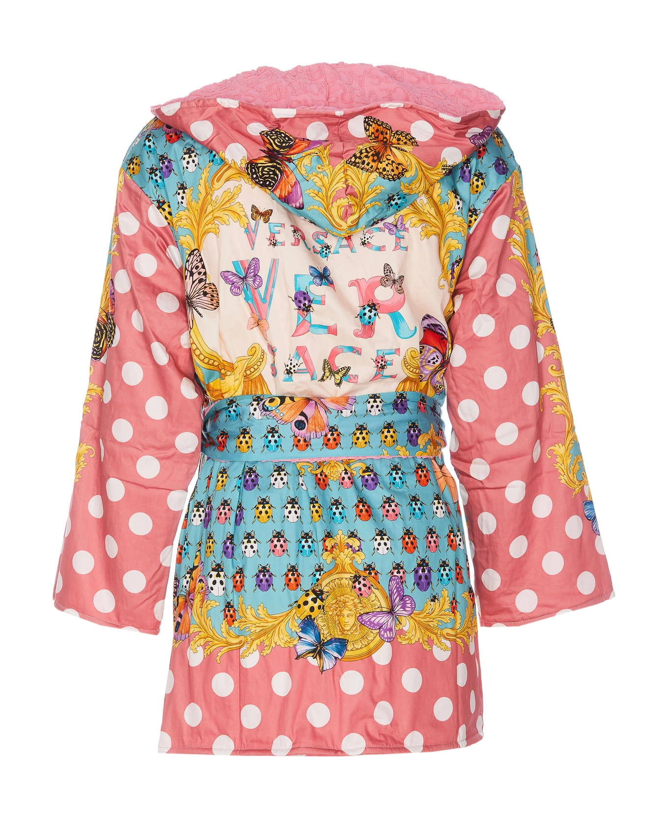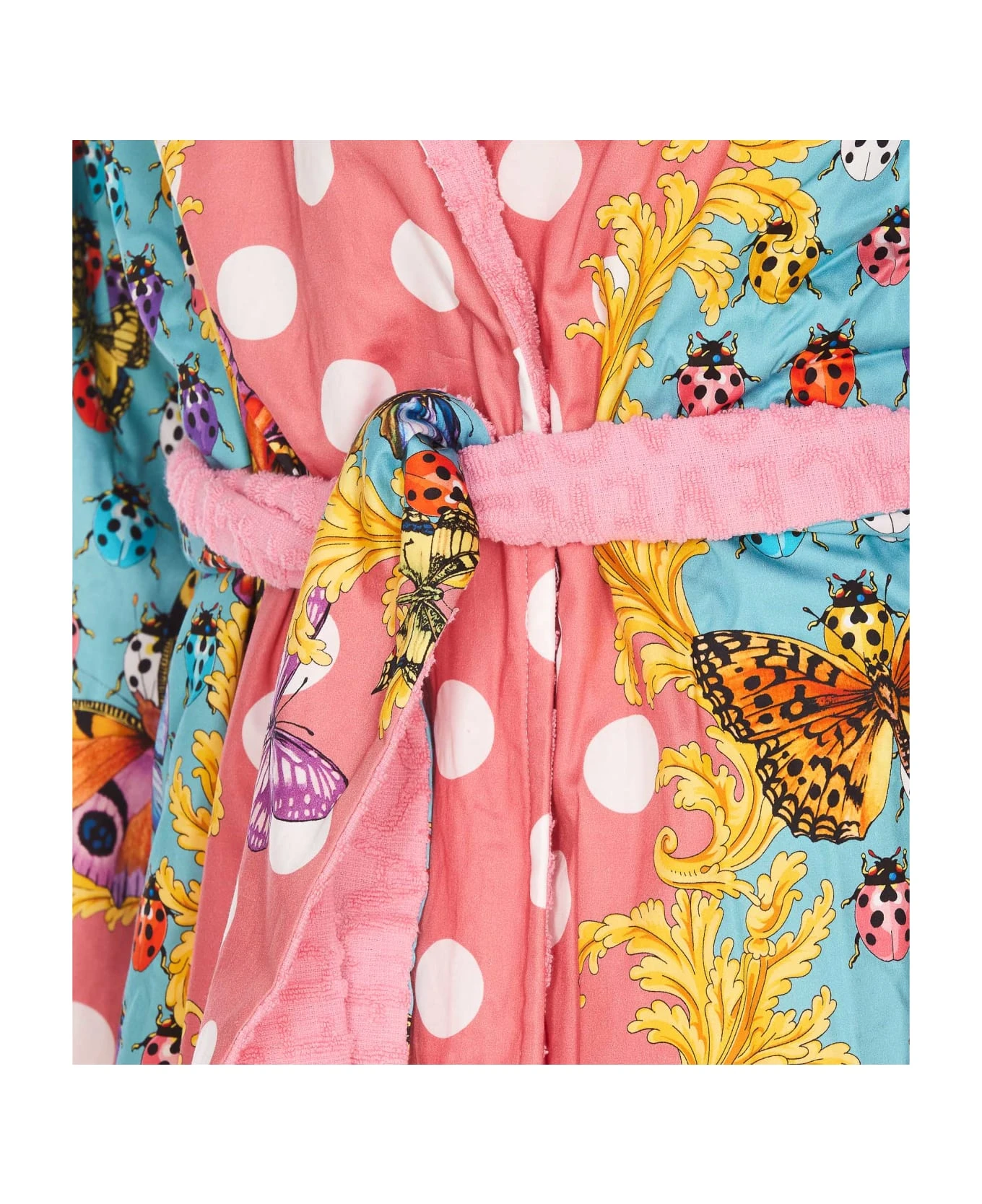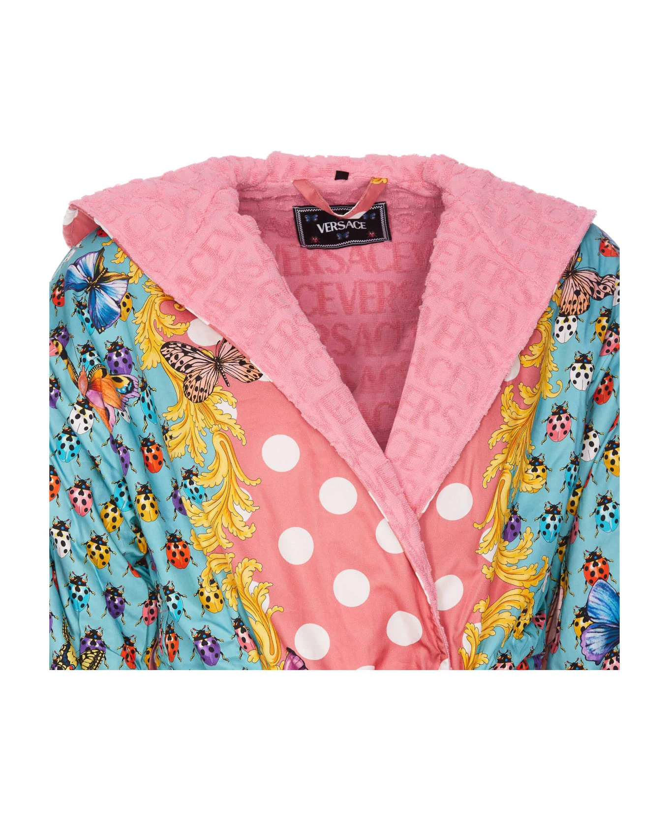 Versace Home pink Butterflies bathrobe, butterflies print, hood, belt closure on waist, pockets