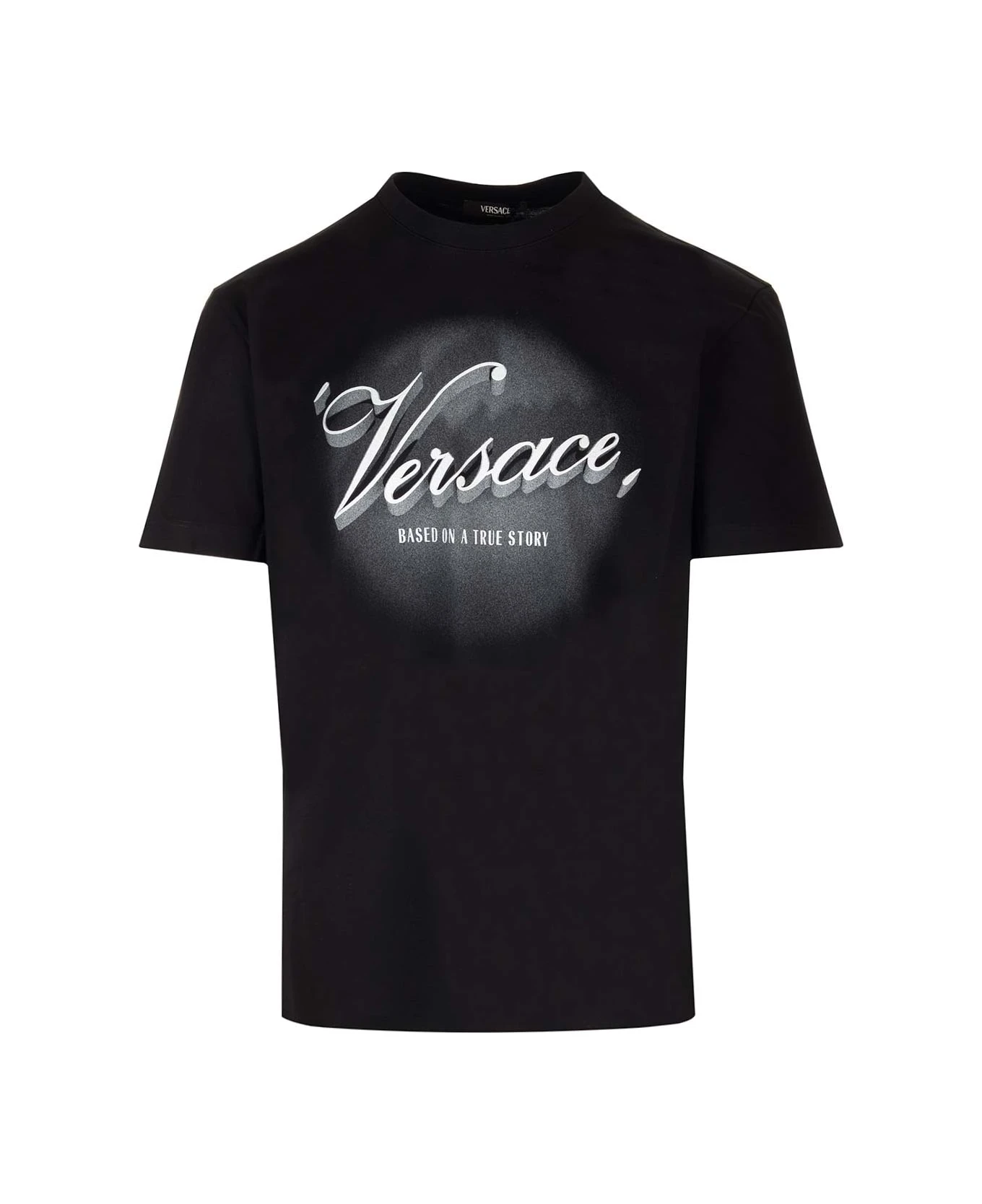 Versace T-shirt in black cotton jersey with ‘Title Films’ graphic print