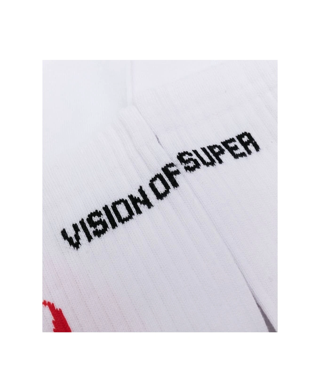 Vision Of Super white socks made of ribbed cotton and finished with logo on the back and iconic flame on the front both inlaid in contrasting color.